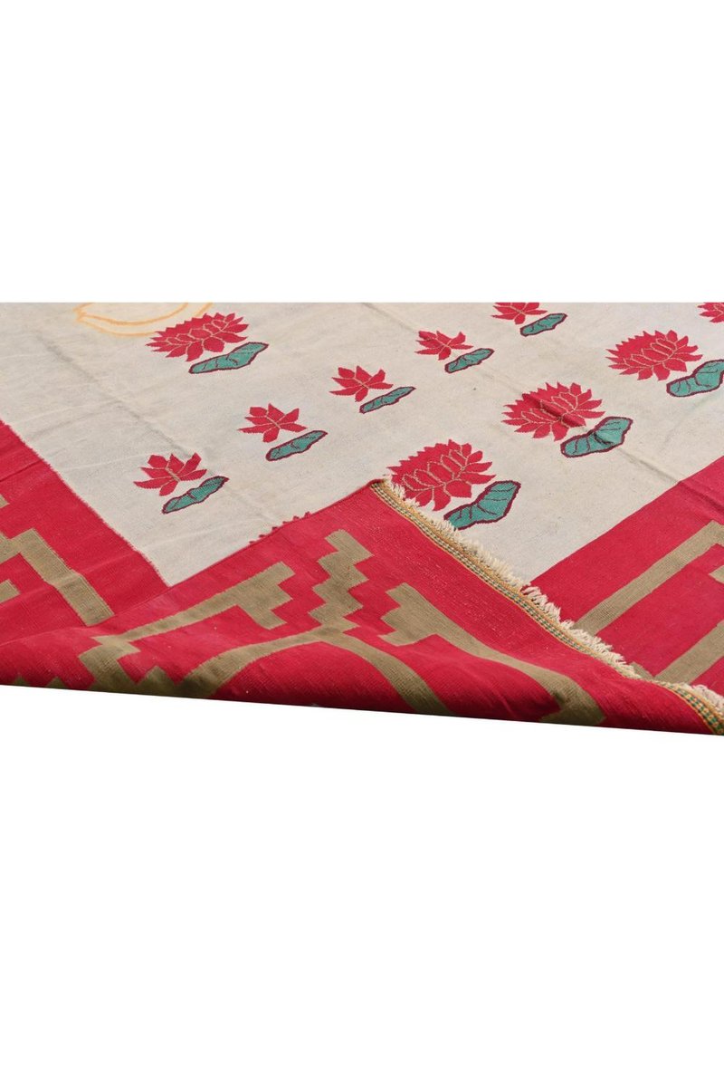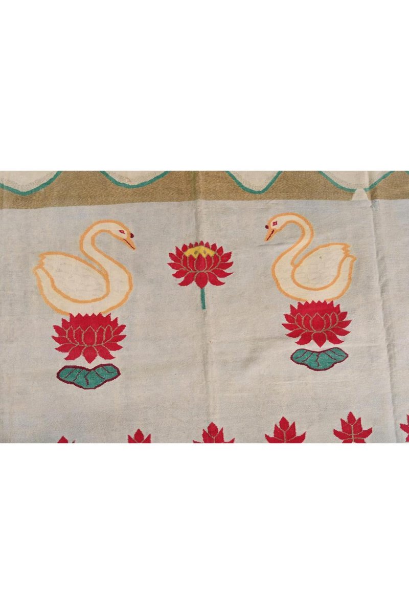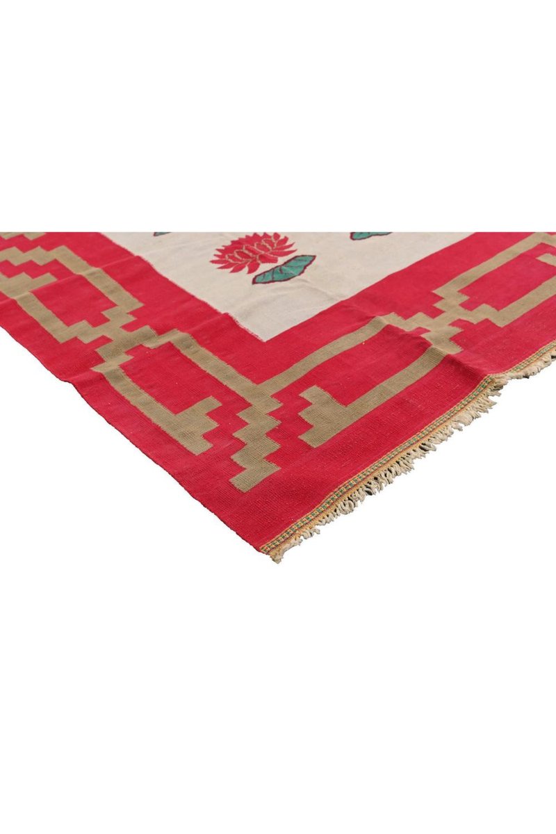 Vintage Dhurrie Flachgewebe in Rot und Blau mit Schwanenbildern von Rug&Kilim, 1950er