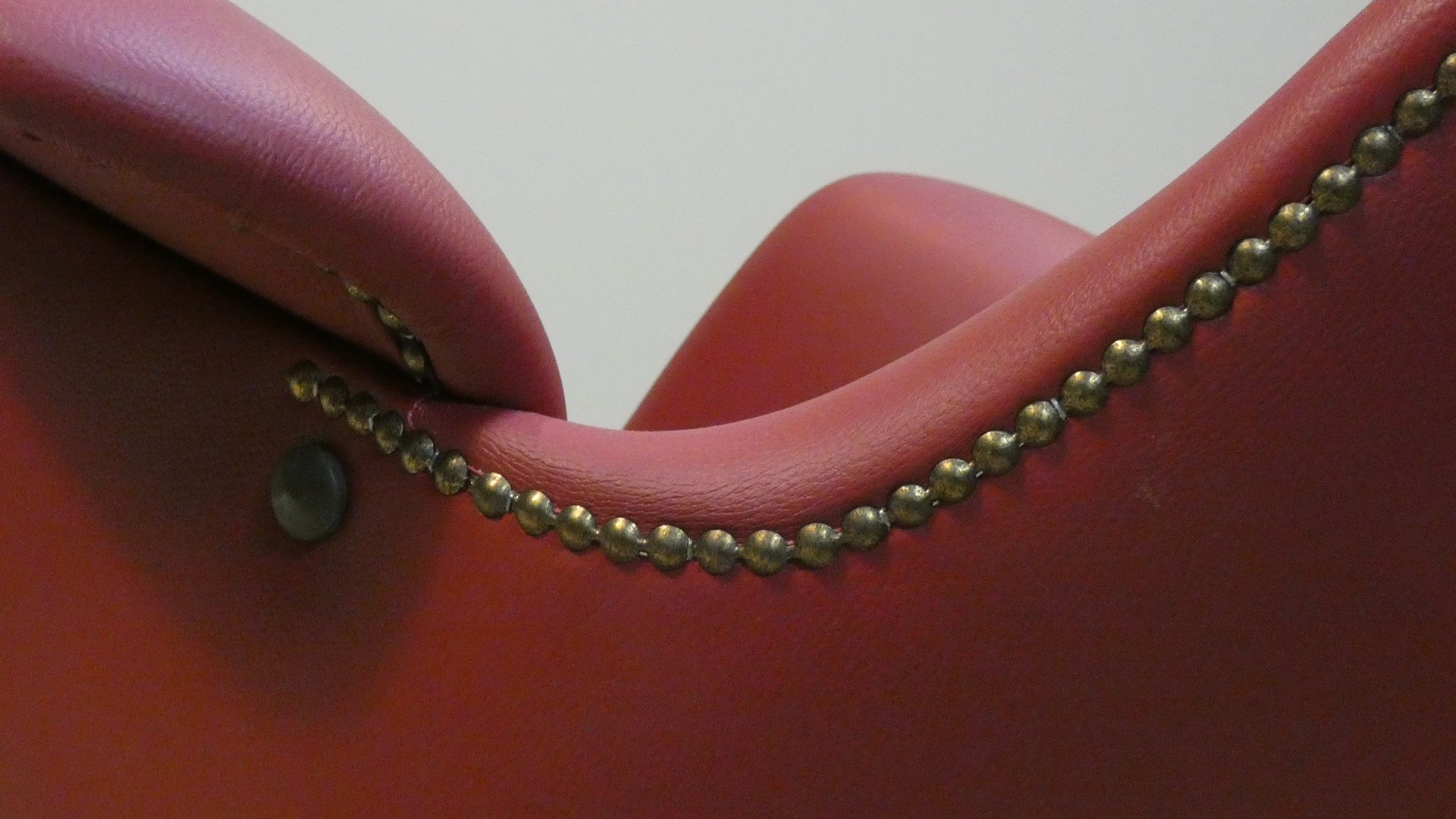 Gorgeous 1960s armchairs, fully restored with burgundy red upholstery and brass studs. These chairs feature a delicate style, linear design, and a welcoming shape. The enveloping backrest and curved armrests embrace the figure, offering comfort. The four-spoke frame features brass feet that lend it a light, elegant feel, and are a hallmark of the period. The armchair swivels 360°, and thanks to a special bar under the seat, this rotation can be limited until it is completely stationary. The backrest encircles the entire armchair, ending beneath the armrests, thus creating lateral support... This shape lends solidity and demonstrates attention to detail. A timeless chair, ideal for stylishly furnishing the living room or for placing in an elegant study or waiting room.