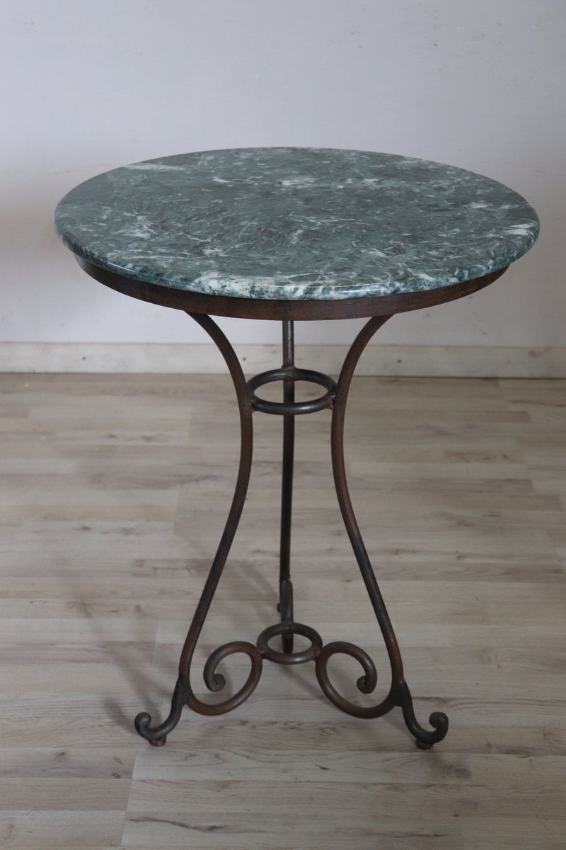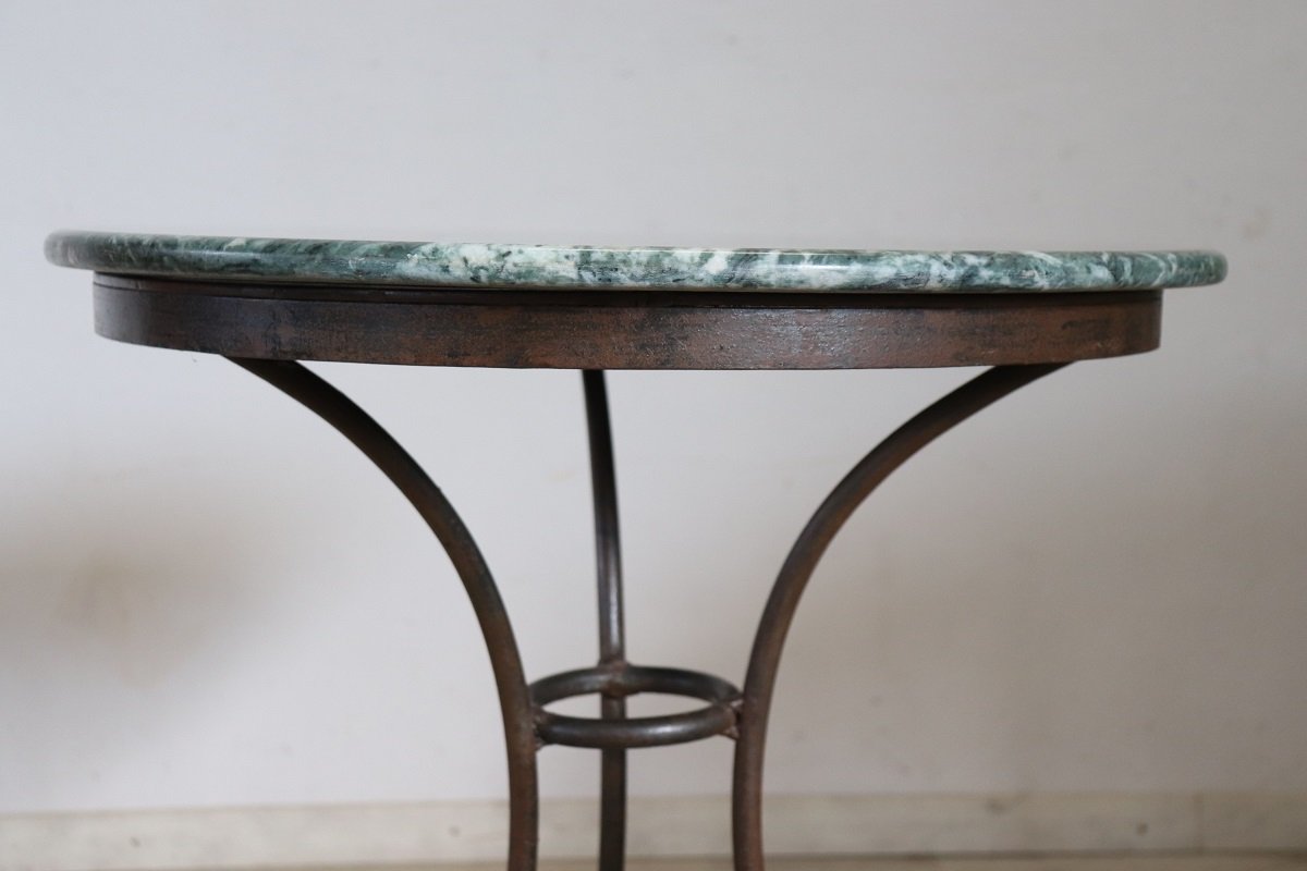 Vintage Eisen Beistelltisch mit Marmorplatte, 1980er