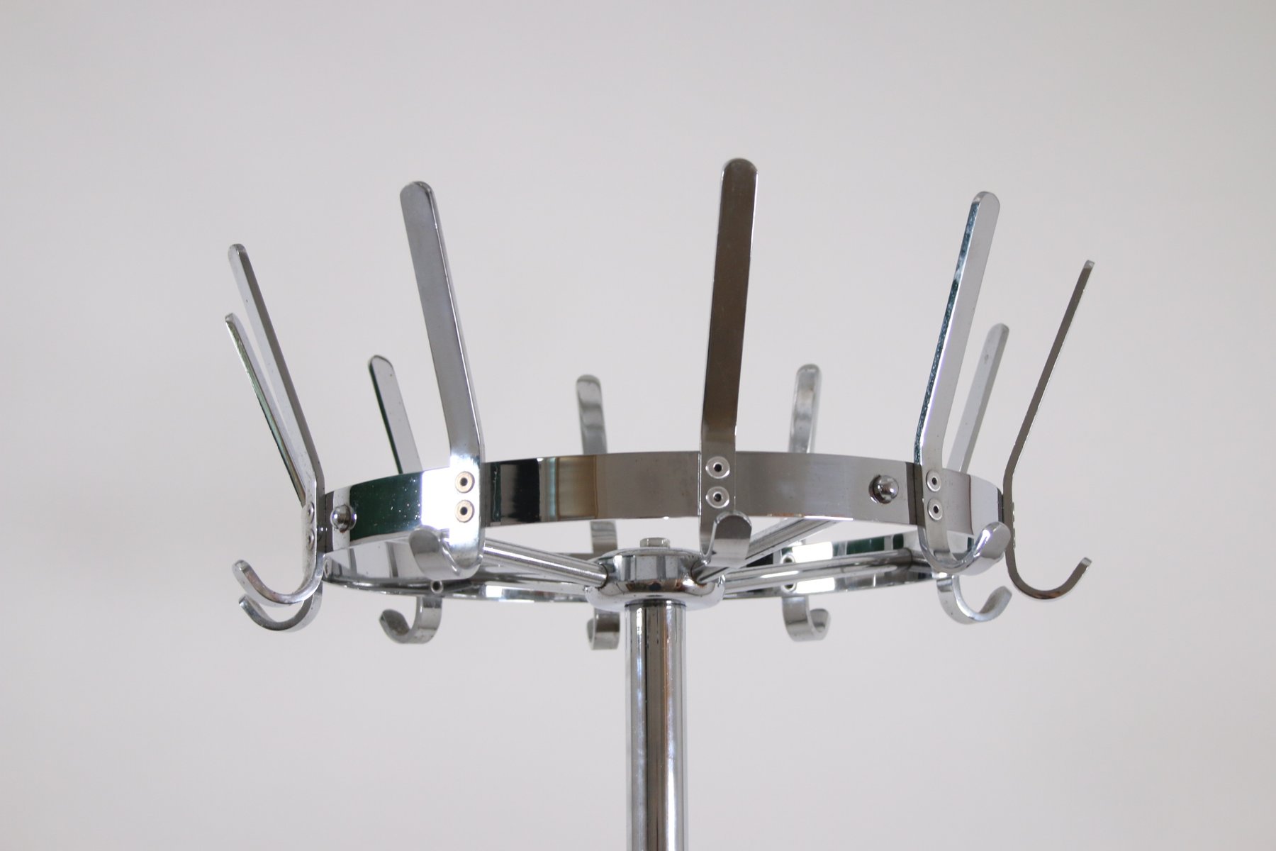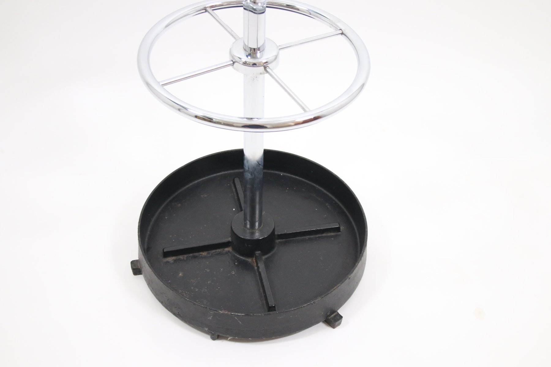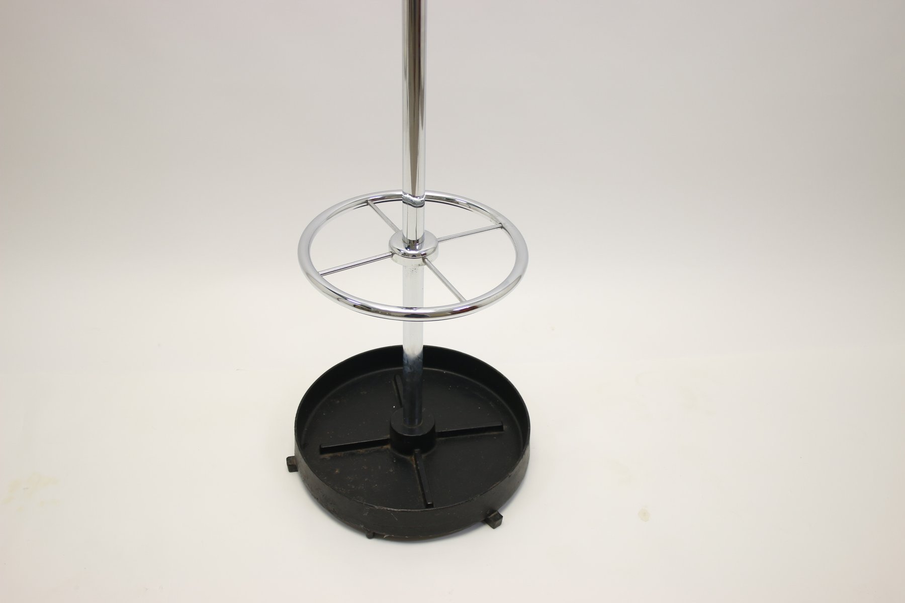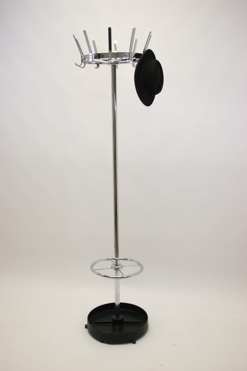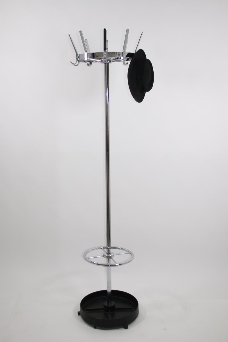 Vintage Garderobe aus Chrom mit Schirmständer aus Gusseisen, 1950er