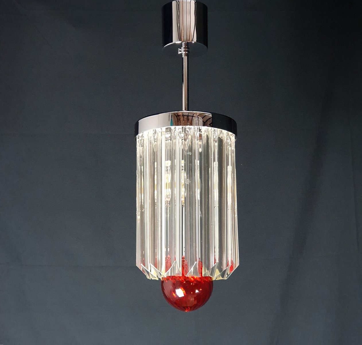 Vintage Hängelampe mit dreiflächigem Muranoglas & mundgeblasener Glaskugel, 1972
