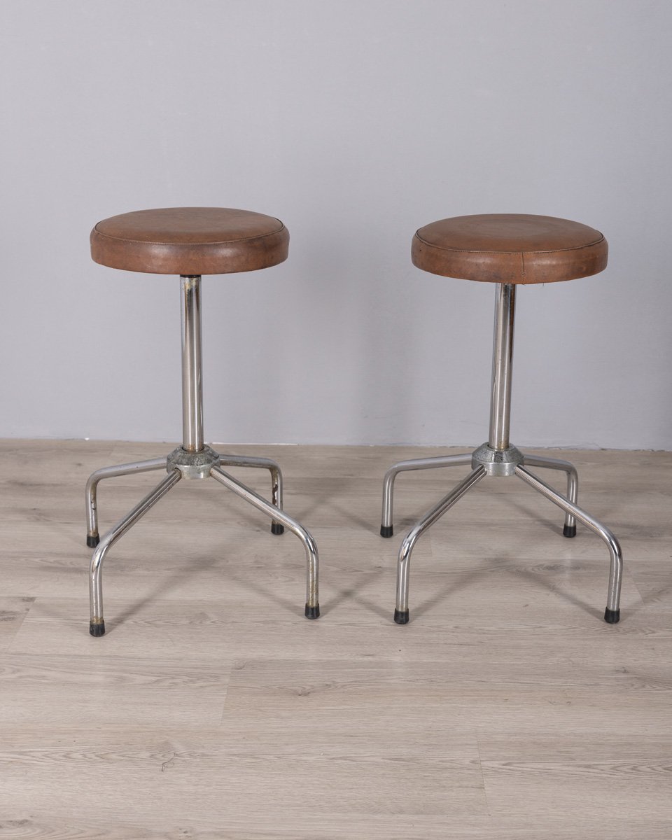 Vintage Hocker aus Metall & Leder, Italien, 1970er, 2er Set