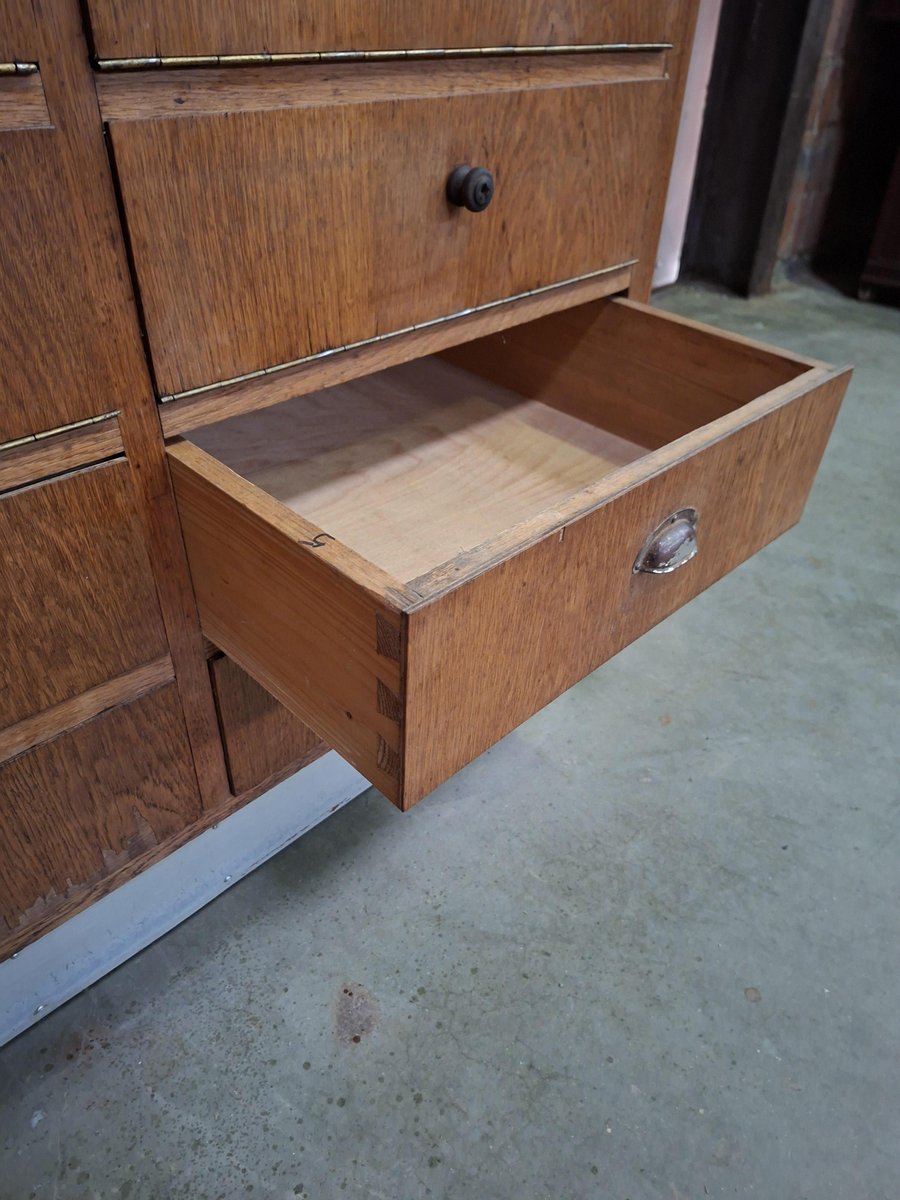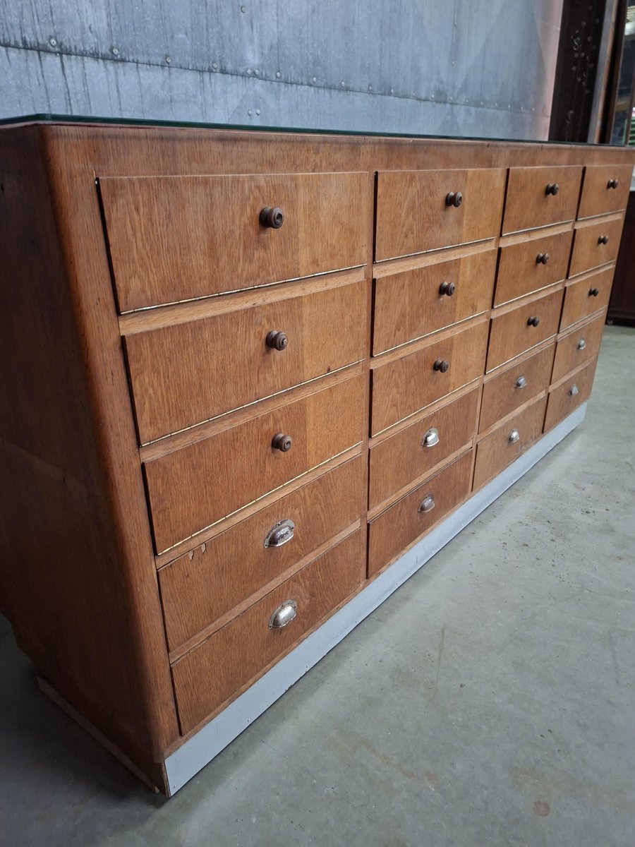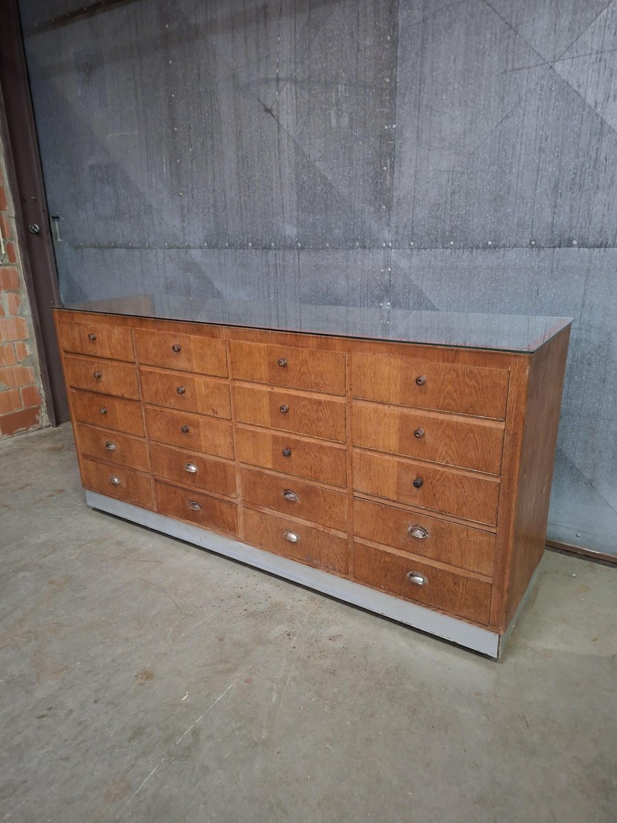 This vintage shop counter is more than a storage unit. With 12 flip-front drawers, 8 deep drawers and a glass display top, it’s a practical and characterful piece for boutiques, cafes, or interiors with a story.