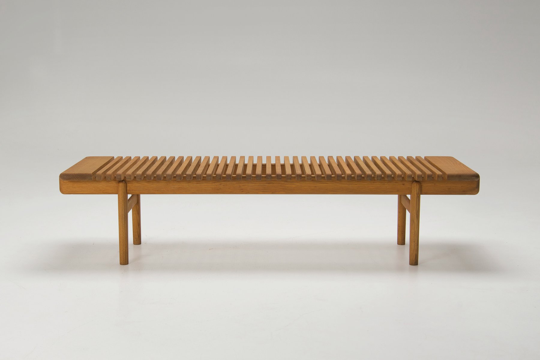 Thanks to its simple, open design, the bench looks light and airy. It blends in seamlessly with its surroundings. Beautifully crafted, it showcases Wegner's exceptional skills.
