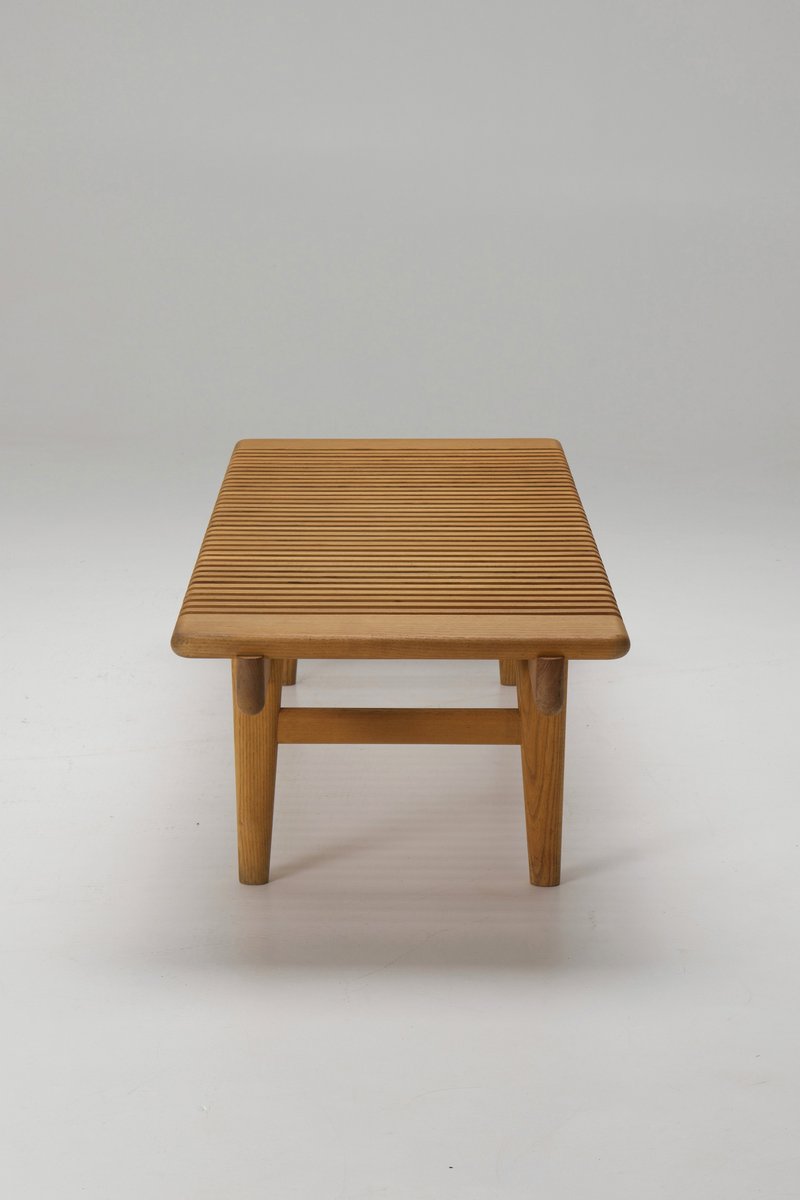 Dies ist eine von Hans Wegner entworfene Barbank JH589 aus Eschenholz. Wegner entwarf diese Bank 1953 für seinen eigenen Hausflur. Sie wurde im selben Jahr von Johannes Hansens Møbelsnedkeri A/S in Dänemark in Produktion genommen. Dieses Exemplar ist eines der letzten, die dort hergestellt wurden. Die Produktion wurde in den 1990er Jahren von PP Møbler wieder aufgenommen.