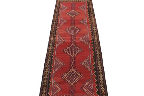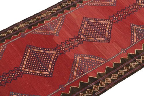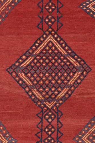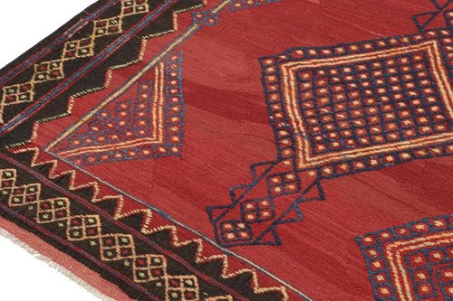 Vintage Kelim in Rot mit blauen geometrischen Mustern, 1950er