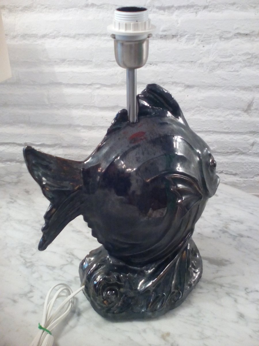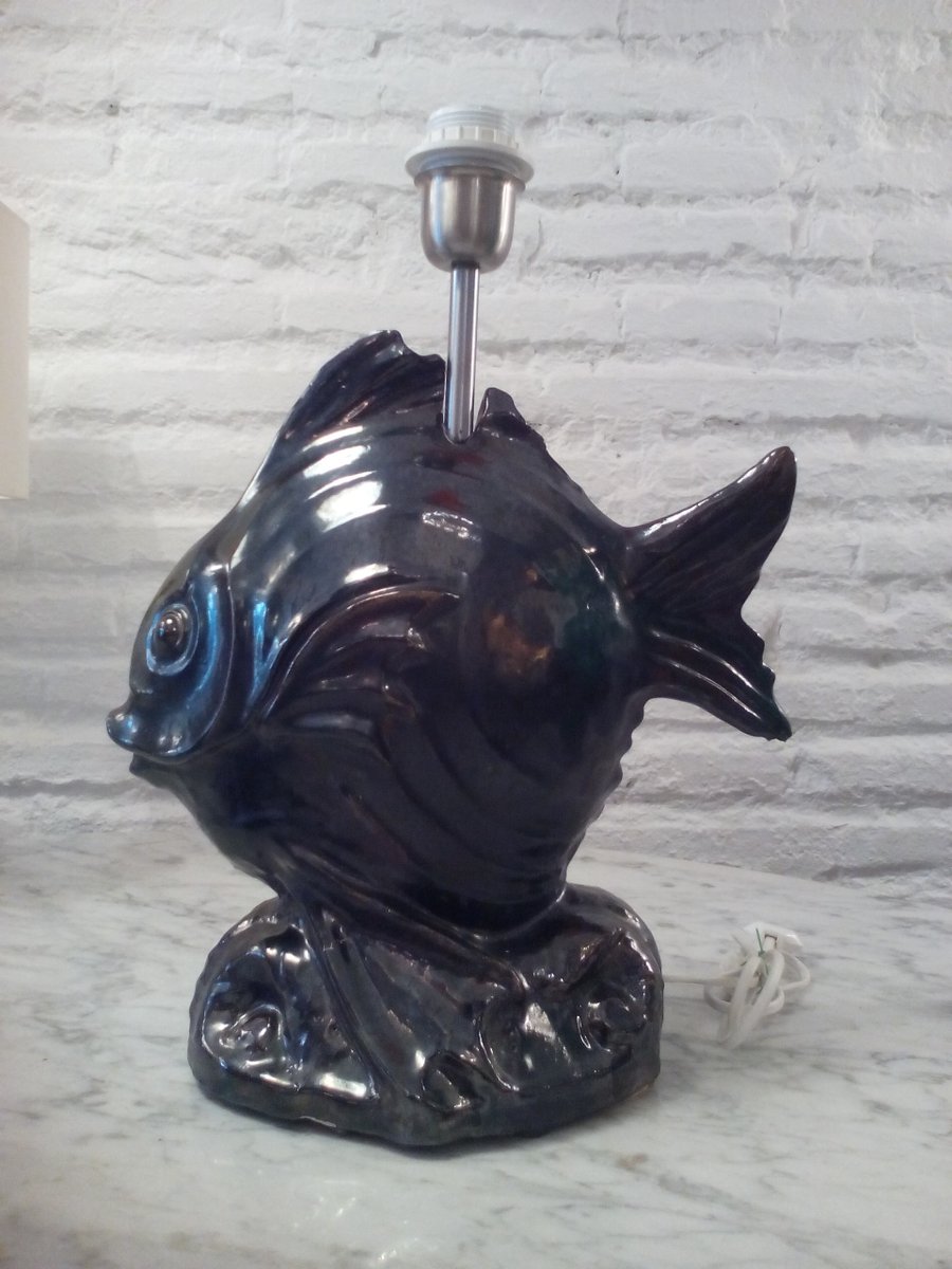 Vintage Keramik Fisch Tischlampe