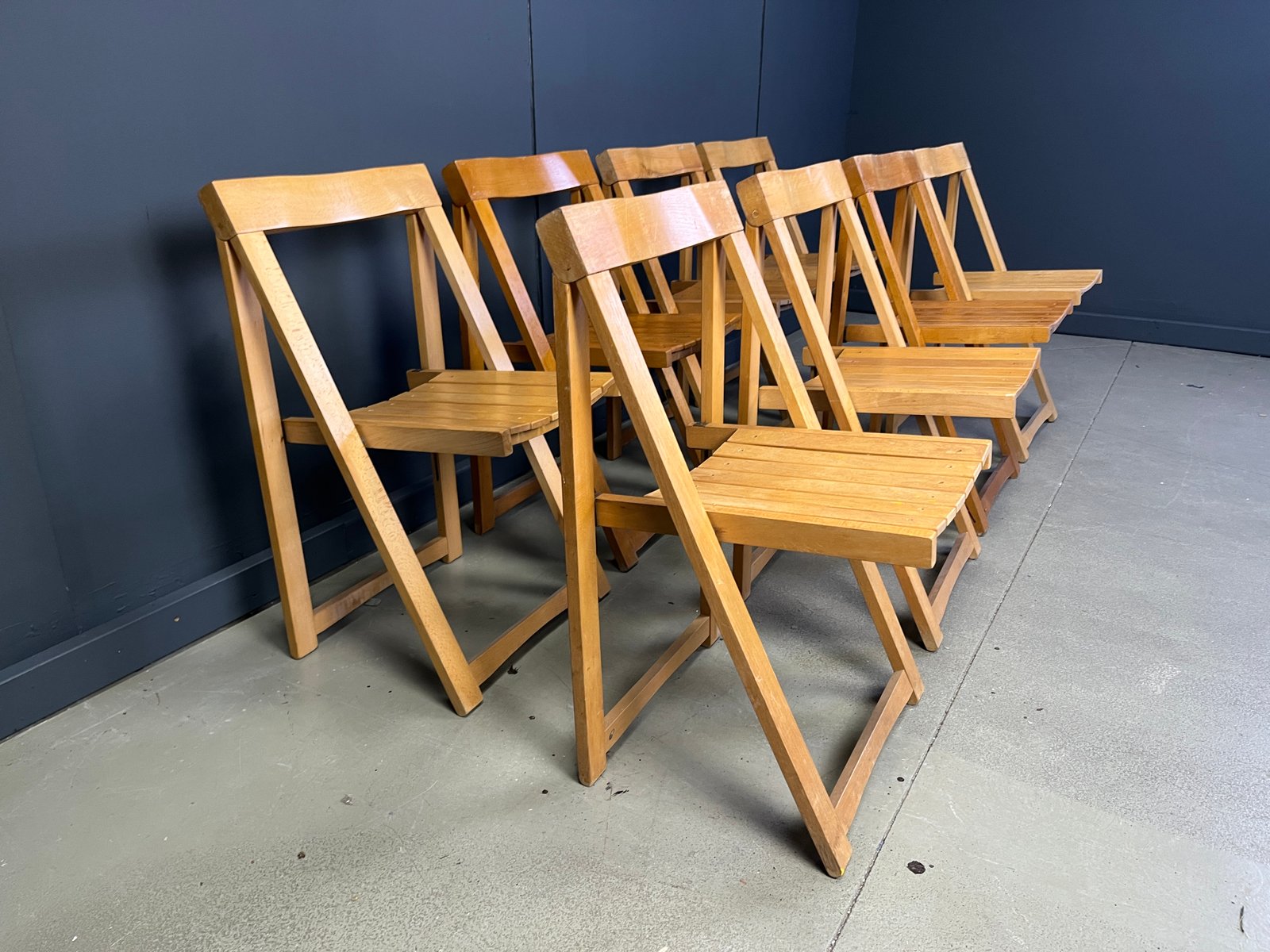Vintage Klappstühle aus Holz, 1960er, 8 . Set