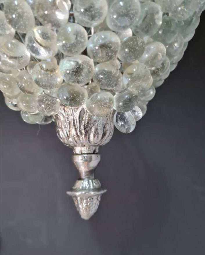 Ein fantastisches und einzigartiges Meisterwerk der Glaskunst im Art-Déco-Modern-Design, das in den 60er Jahren mit der unvergleichlichen Handwerkskunst der Murano-Glasbläser geschaffen wurde. Stilisierte Darstellung von Weintrauben auf einem antiken Bronzesockel, ausgestattet mit zwei E27-Fassungen.