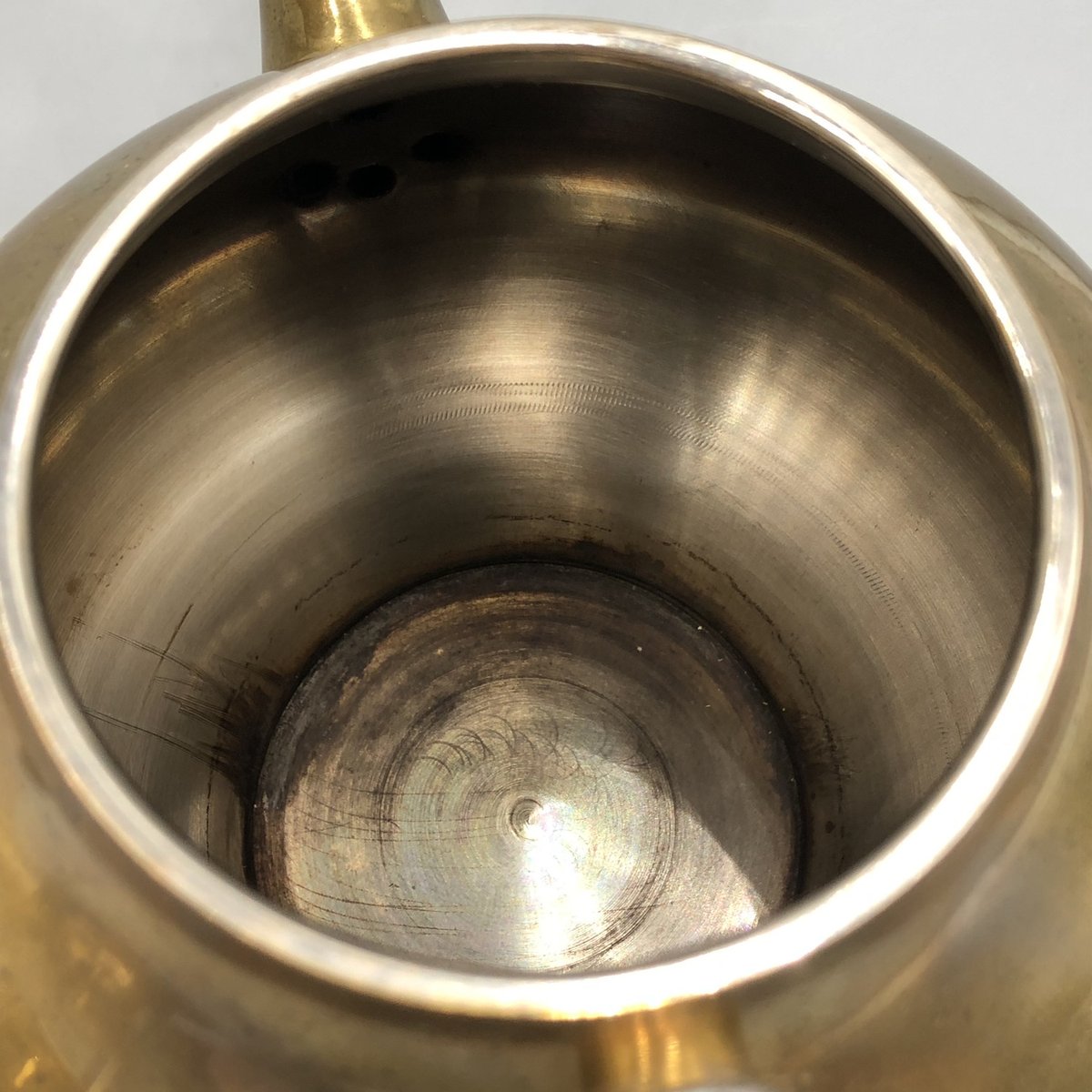 The set also includes a matching tea kettle that is placed on the samovar, as well as a small brass bowl and an original instruction manual. The samovar is richly detailed, with elegant, curved spouts and delicate handles that form a beautiful contrast to the shiny brass. The base provides stability, while the classically shaped dome and curved decorations reflect traditional Russian style.