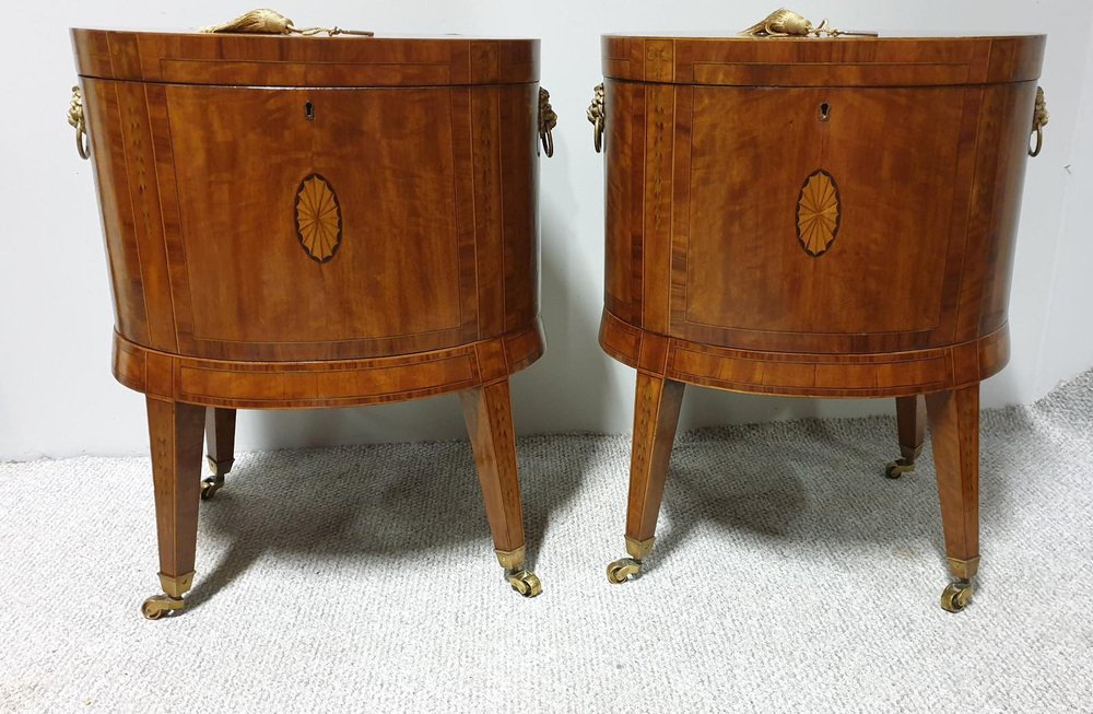Vintage Satinwood Weinkühler mit Intarsien, 2 . Set
