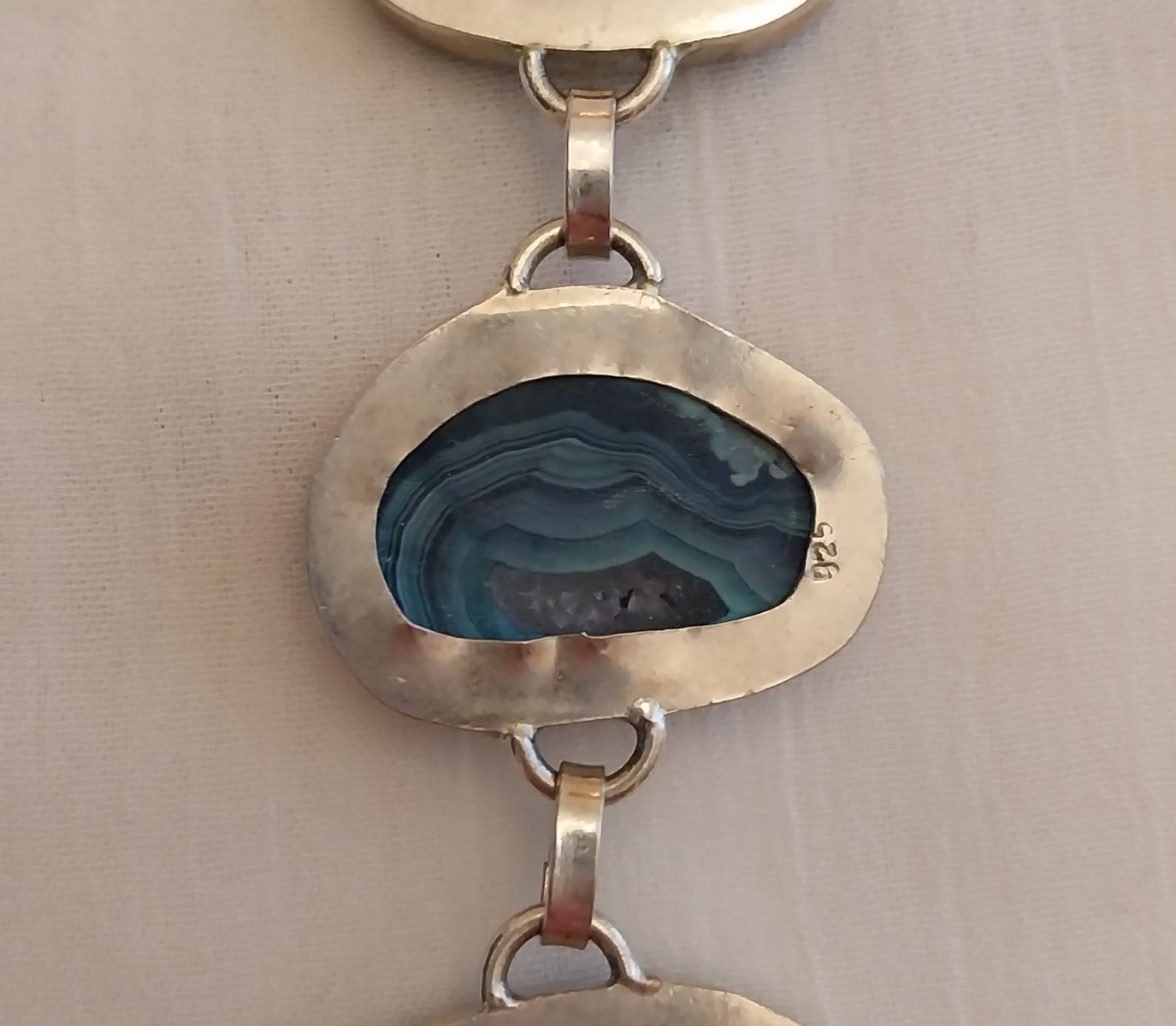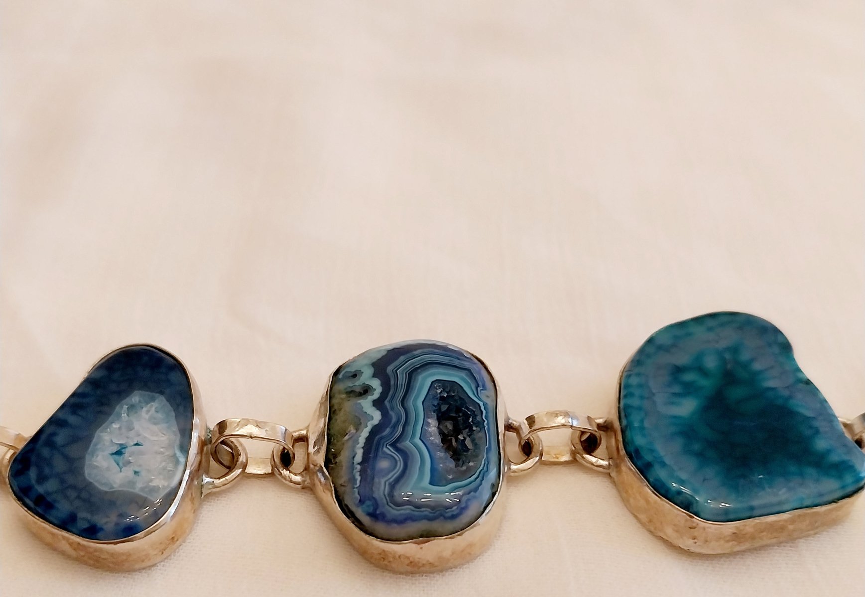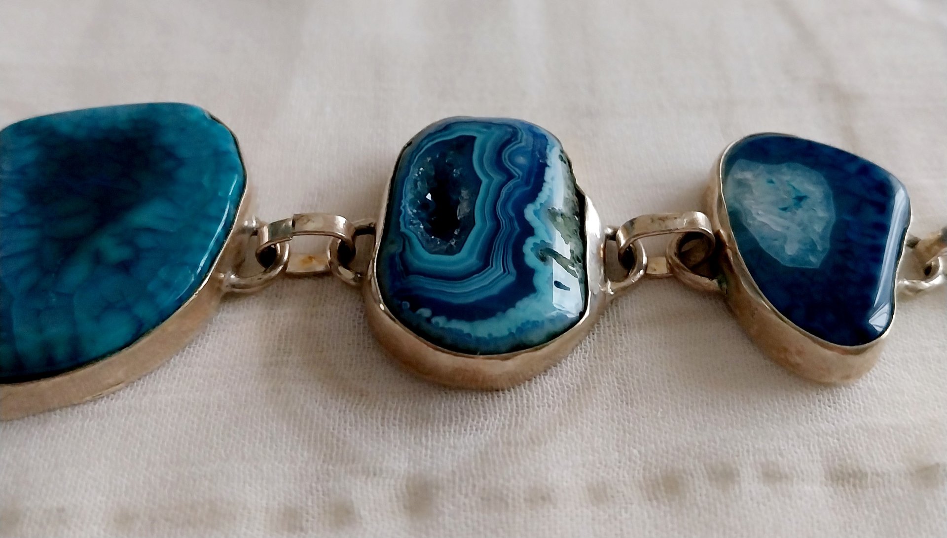 Vintage Silberarmband mit blauen Achat Steinen, 1970er