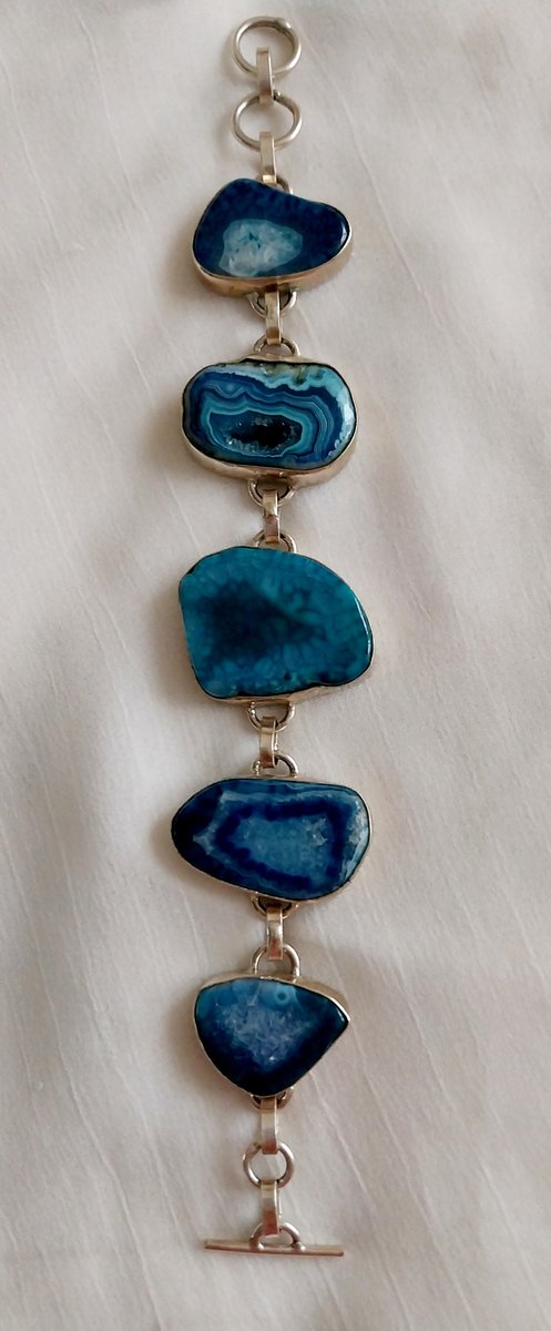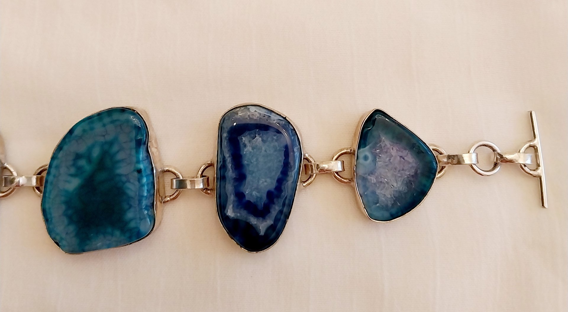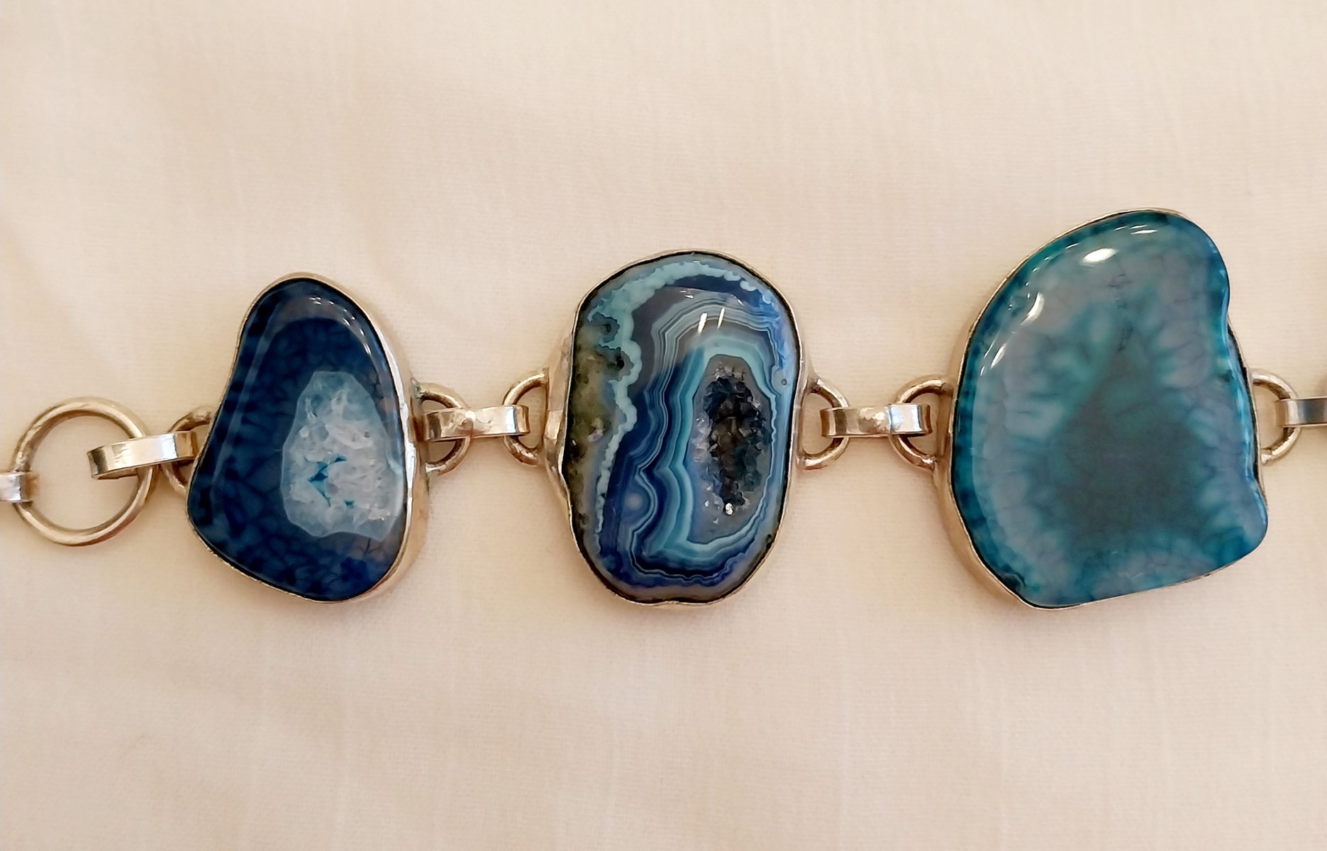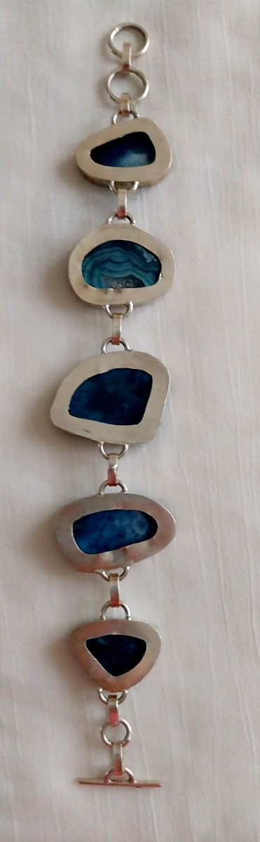 Vintage Silberarmband mit blauen Achat Steinen, 1970er