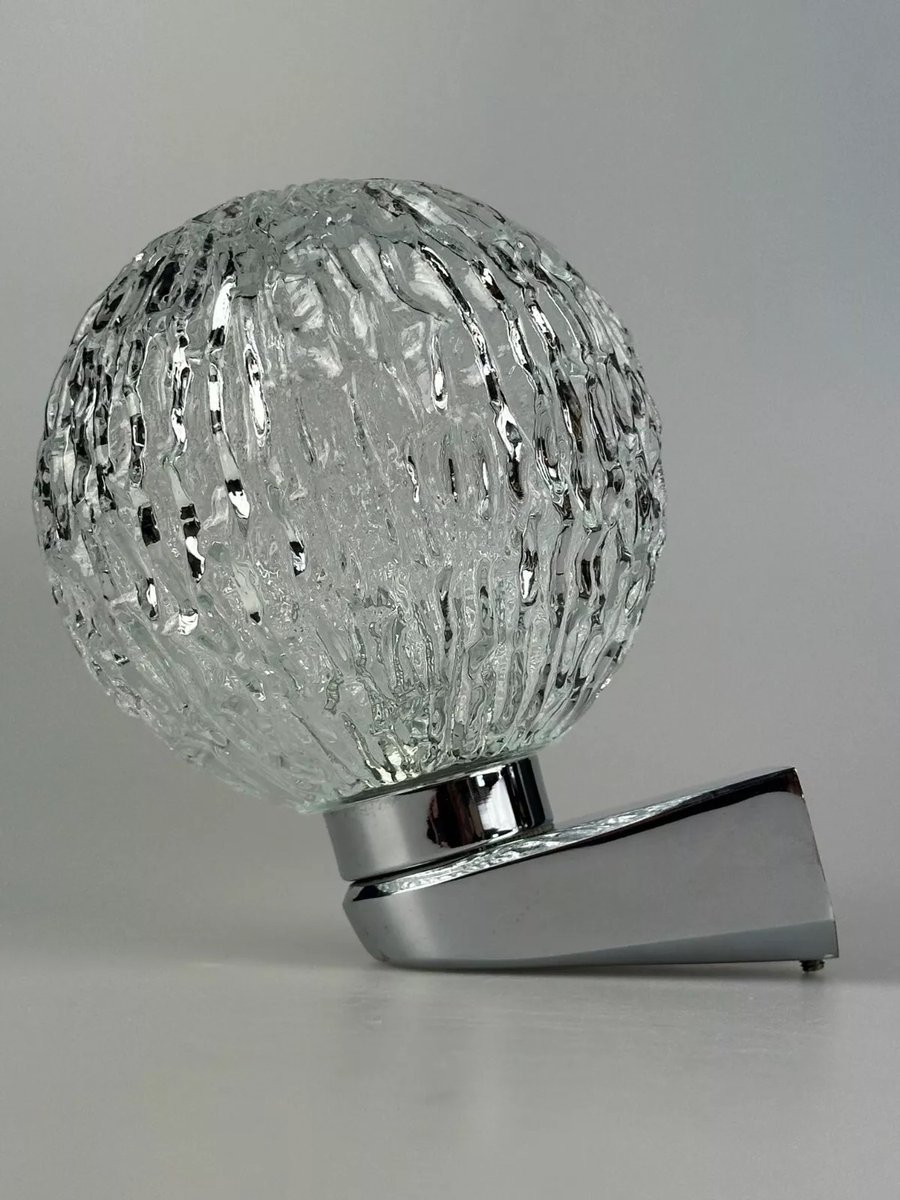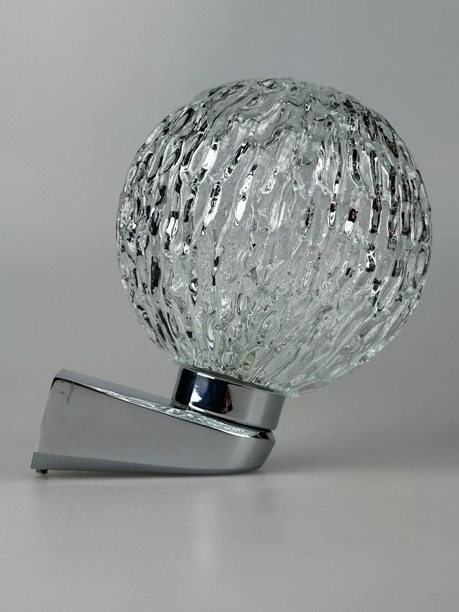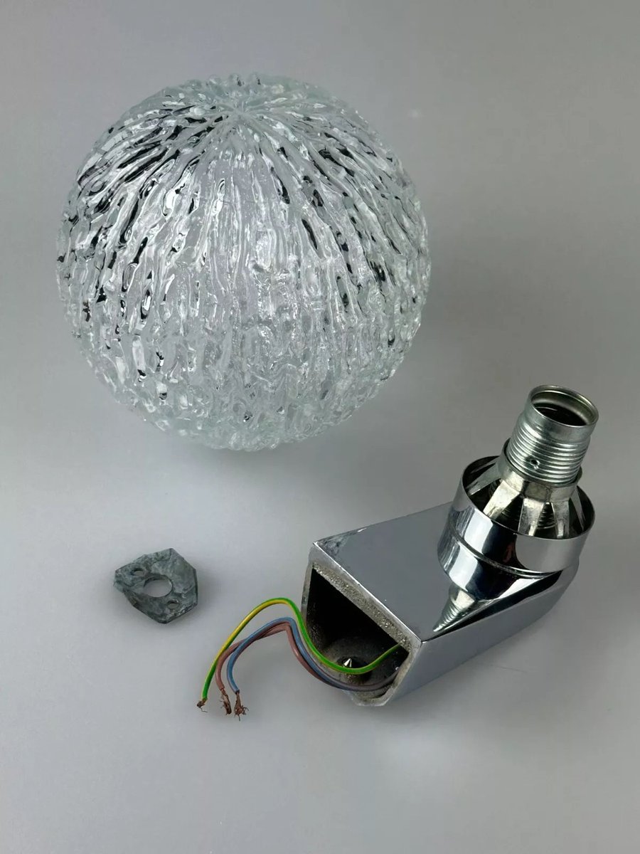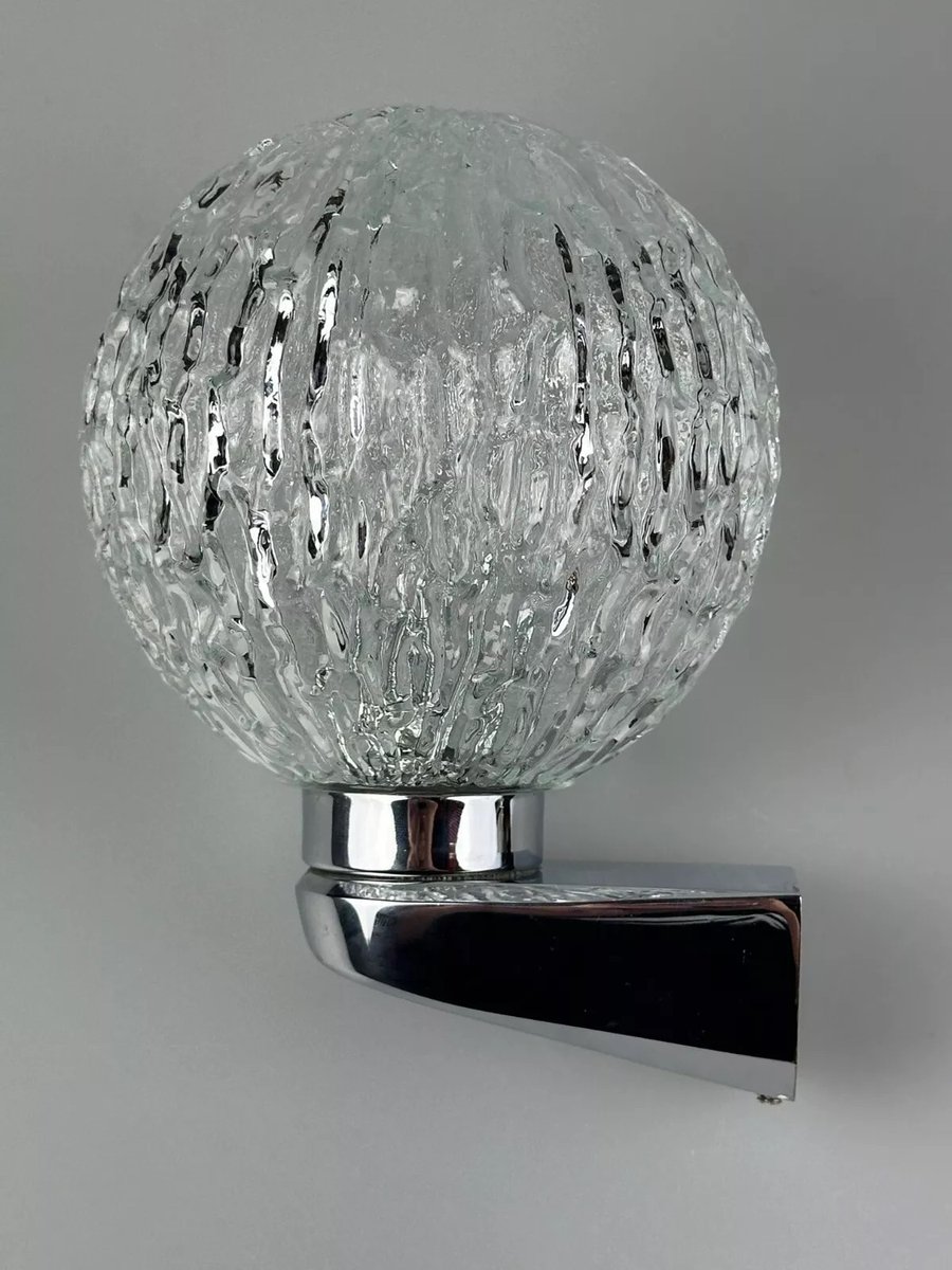 Vintage Space Age Wandlampe aus Metall Chrom & Glas, 1970er