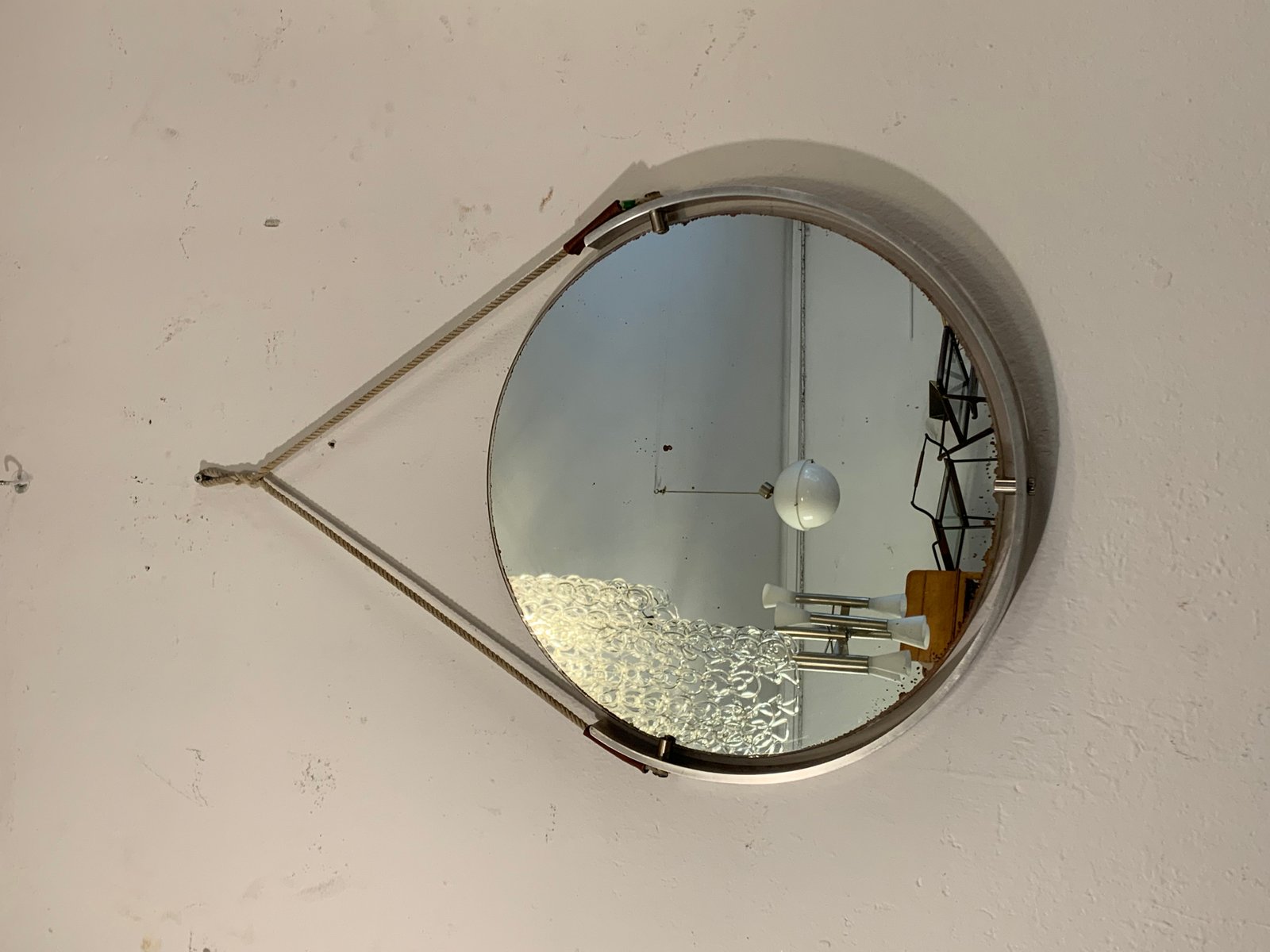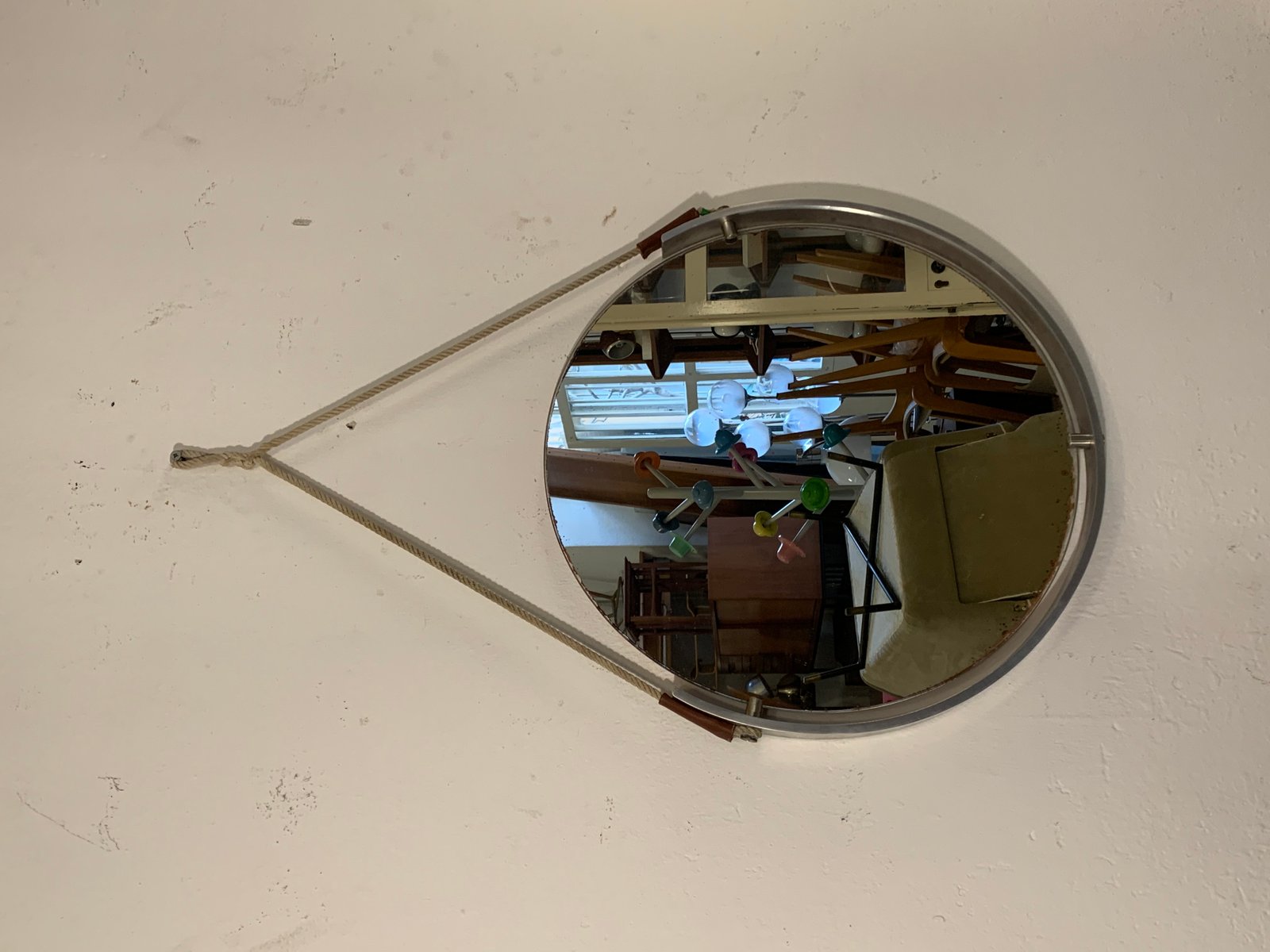 Vintage Spiegel aus Metall & Seil