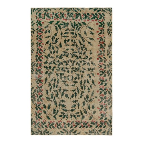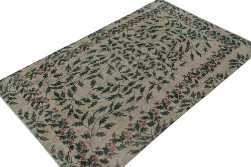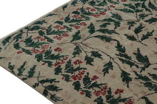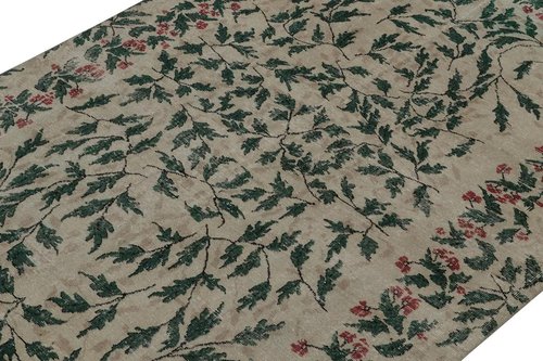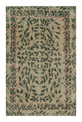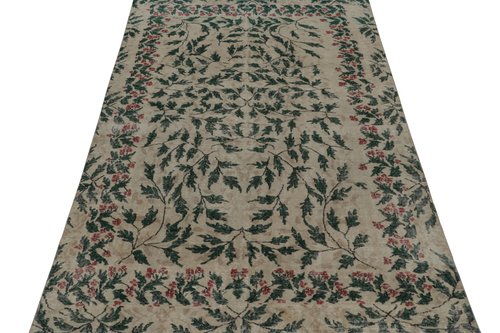 Vintage Teppich mit Blumenmuster in Taupe und Waldgrün von Zeki Müren