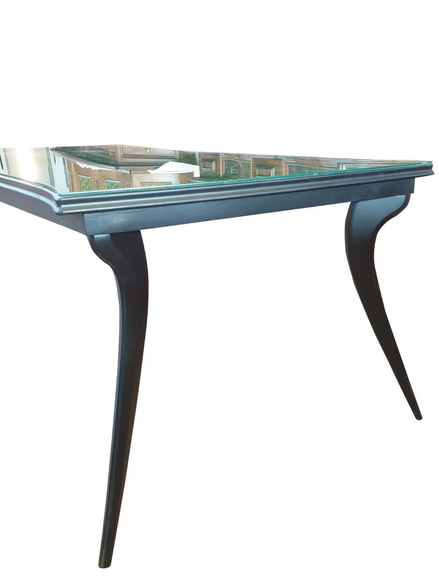 Vintage Tisch mit grüner Glasplatte aus Kunstmarmor und geschwungenen Beinen, 1950er