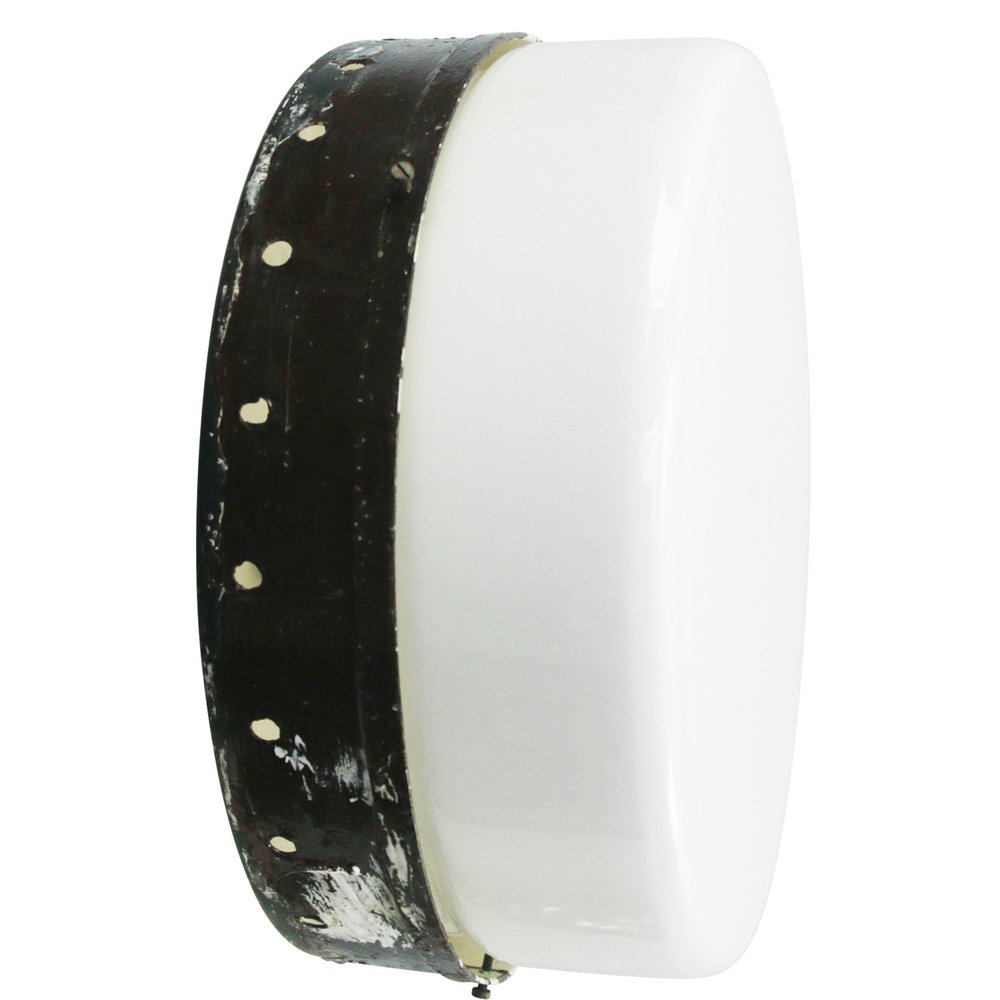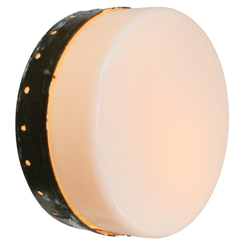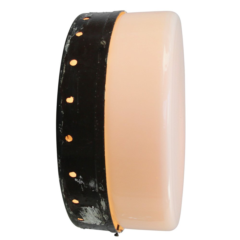 Vintage Wandleuchte aus weißem Opalglas & Eisen