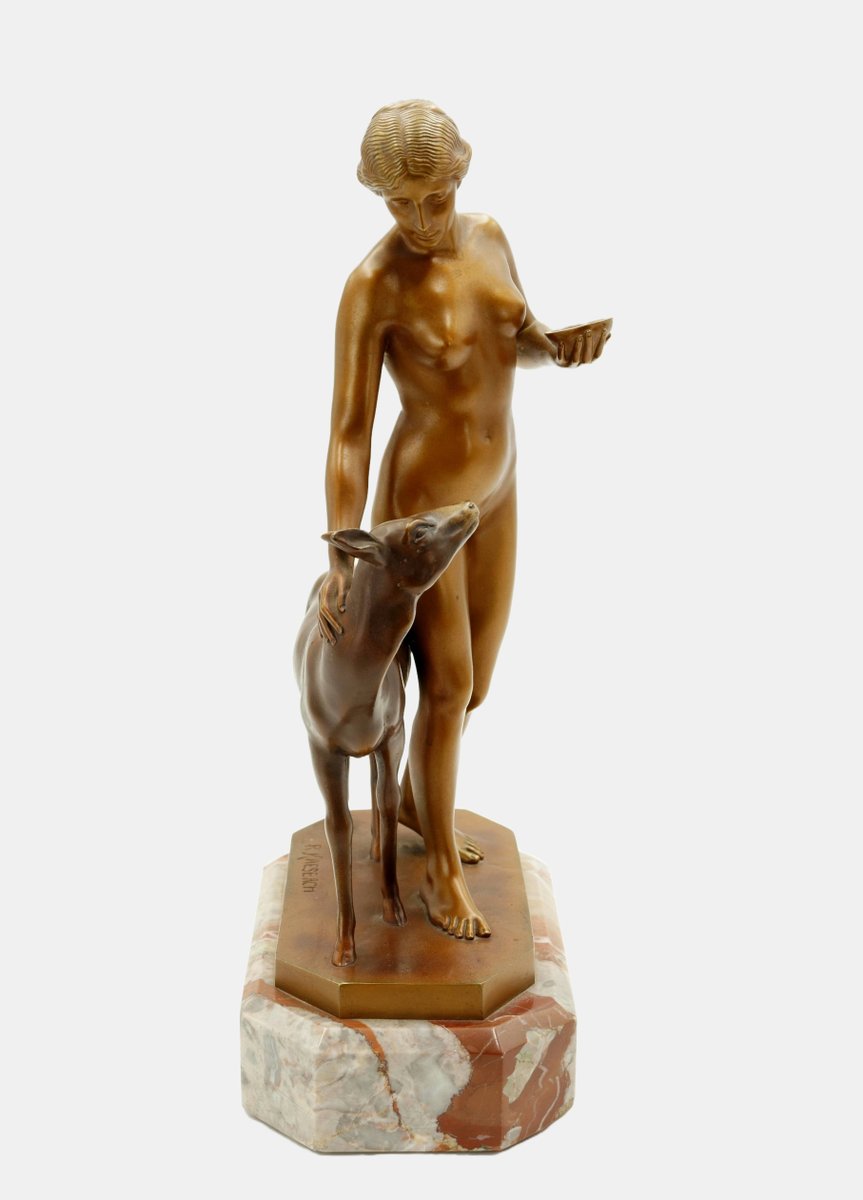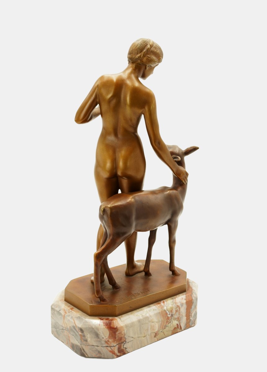 Die Bronzeplastik veranschaulicht eine junge Frau im innigen Austausch mit einem sie begleitenden Reh. Das Tier hält inne, um sich zu ihr hochzuwenden, während die nackte Schönheit ihren Schritt verlangsamt, um dem Reh ebenfalls in die Augen zu schauen und es zärtlich mit der Hand zu liebkosen. Die Frau und das Reh sind in einem inneren Gleichklang. Auch wenn ihre Lippen unbewegt bleiben, spricht sie die Sprache des Tieres, mit dem sie auf eine tief empfundene Weise verbunden ist.