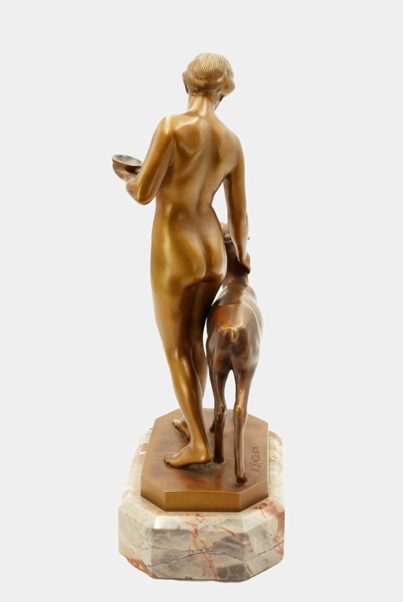 Rudolf Kaesbach (1873 Gladbach - 1955 Berlin), Forest idyll, around 1915. Bronze, gold and golden brown patina, with cast plinth, mounted on a marble base (5 cm high), total height 36 cm, dimensions of the bronze: 31 cm (height) x 17 cm (length) x 12 cm (width). Weight 4,6 kg, signed on the plinth "R.[udolf] KAESBACH".