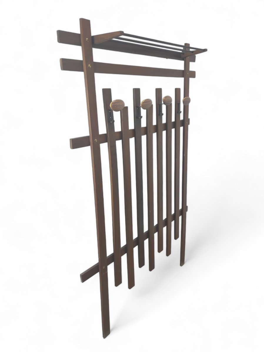 Wandhalterung aus Holz für Kleidung und Accessoires, 1980er