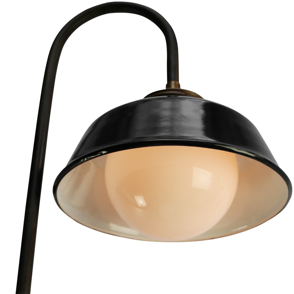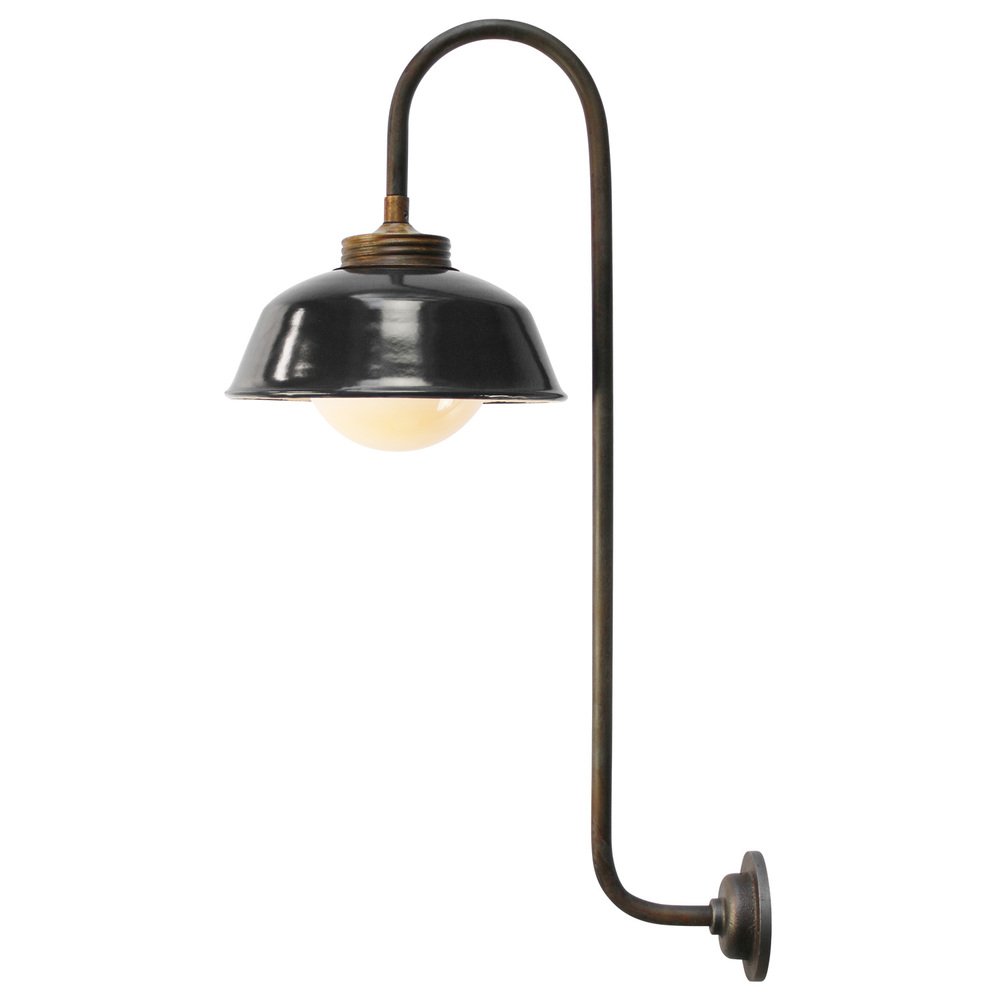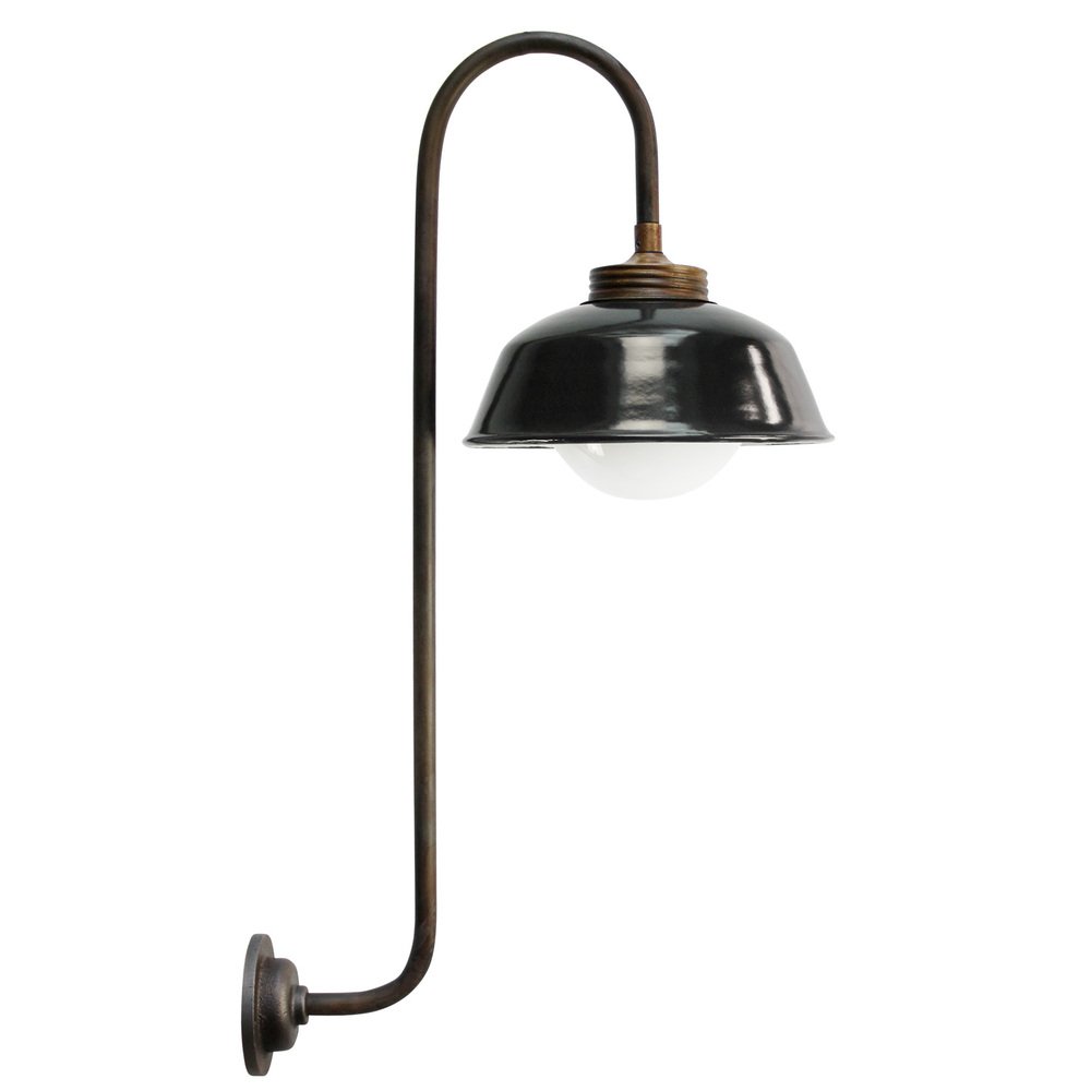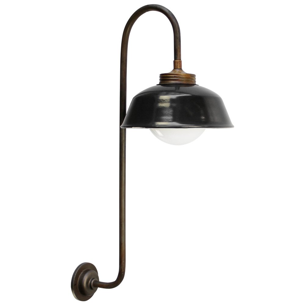 Wandlampe aus schwarzem Emaille, Messing und weißem Opalglas