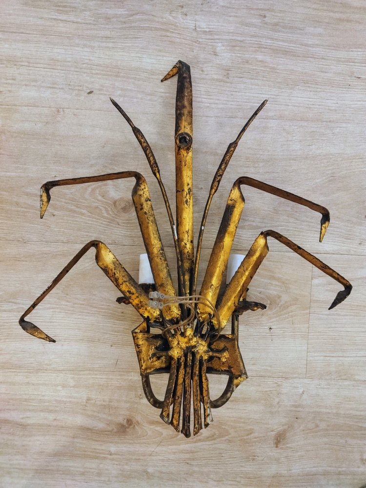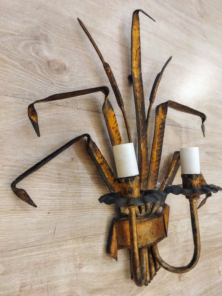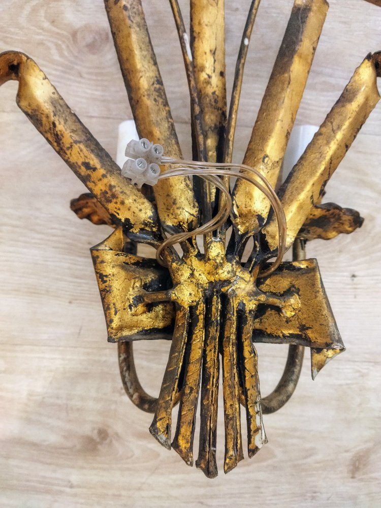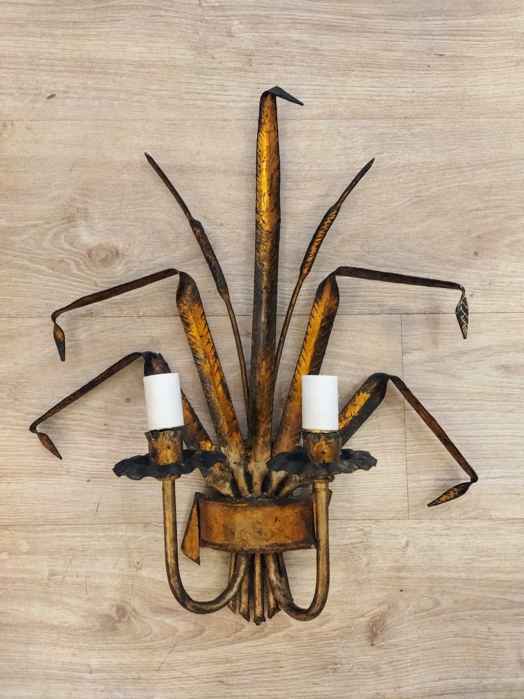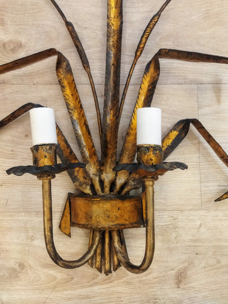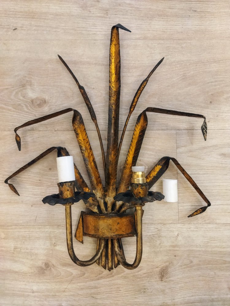 Wandlampe aus vergoldetem Eisen mit Gemüsemotiven, Spanien, 1950er