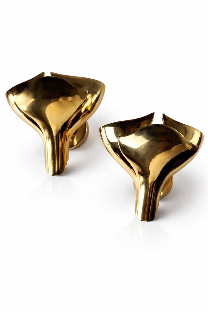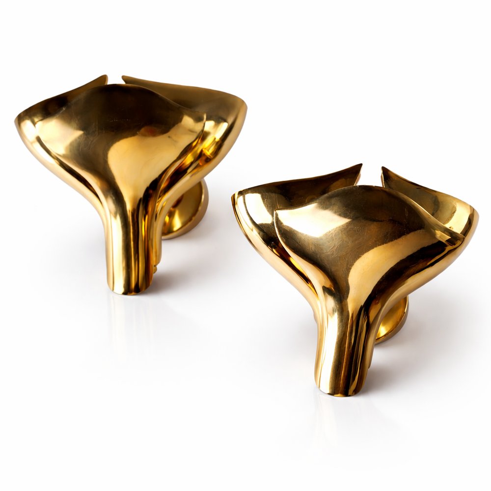 Paar italienischer Wandleuchten aus polierter massiver Bronze, hergestellt von Fratelli Martini in den 1980er Jahren. Diese skulpturalen Leuchten zeichnen sich durch ein elegantes Blumenmotiv aus überlappenden Blütenblättern aus, das für das italienische postmoderne Design dieser Zeit charakteristisch ist. Diese Wandleuchten aus massiver Bronze sind besonders dick und schwer und zeugen von hochwertiger Handwerkskunst und außergewöhnlicher Verarbeitung. Die polierte Oberfläche sorgt für wunderschöne goldene Reflexe und verleiht den Leuchten eine starke dekorative Präsenz, egal ob sie beleuchtet sind oder nicht.