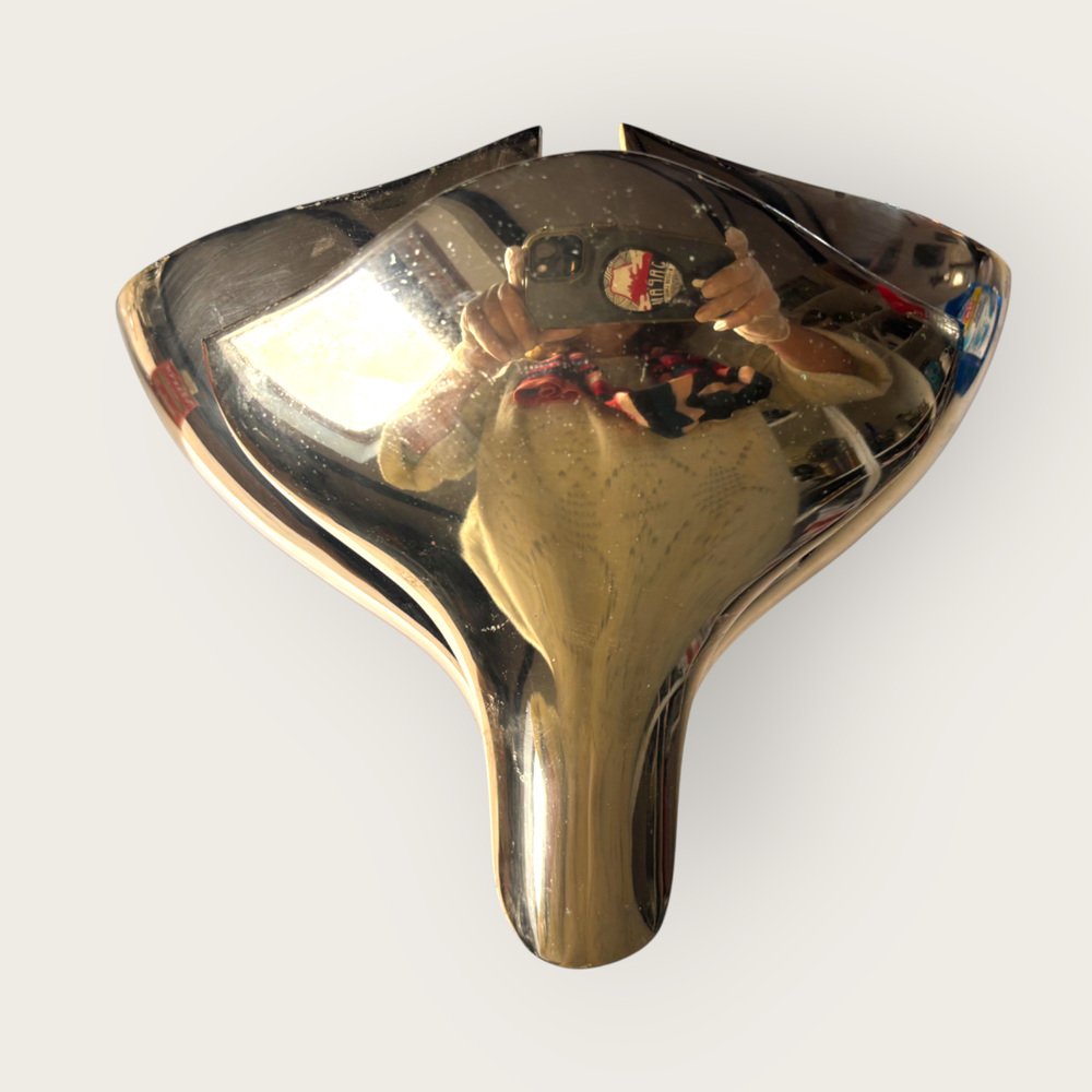 Pair of Italian wall sconces in polished solid bronze, produced by Fratelli Martini in the 1980s. These sculptural lights feature an elegant floral motif of overlapping petals, characteristic of Italian postmodern design of the period.