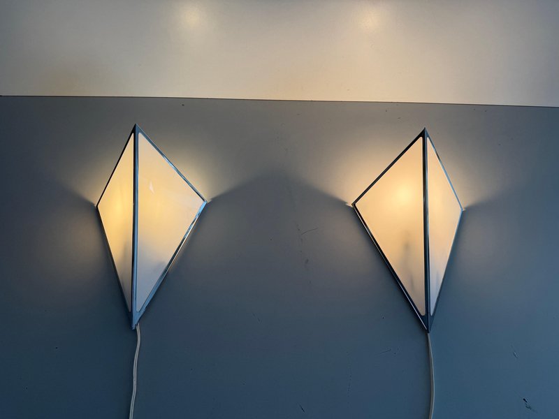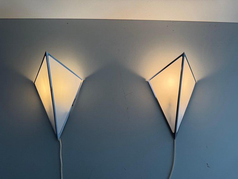 Wandleuchten aus Opalglas & Aluminium, Deutschland, 1980er, 2er Set
