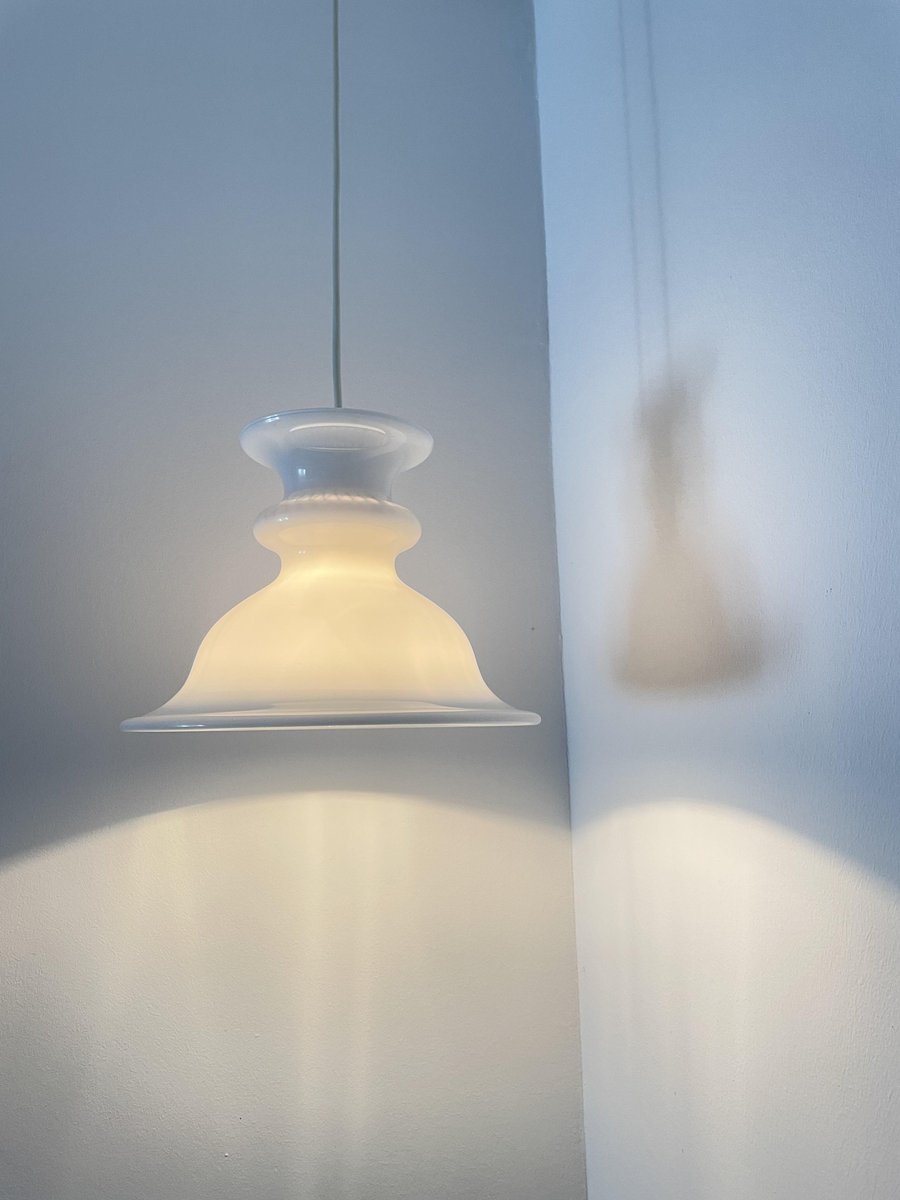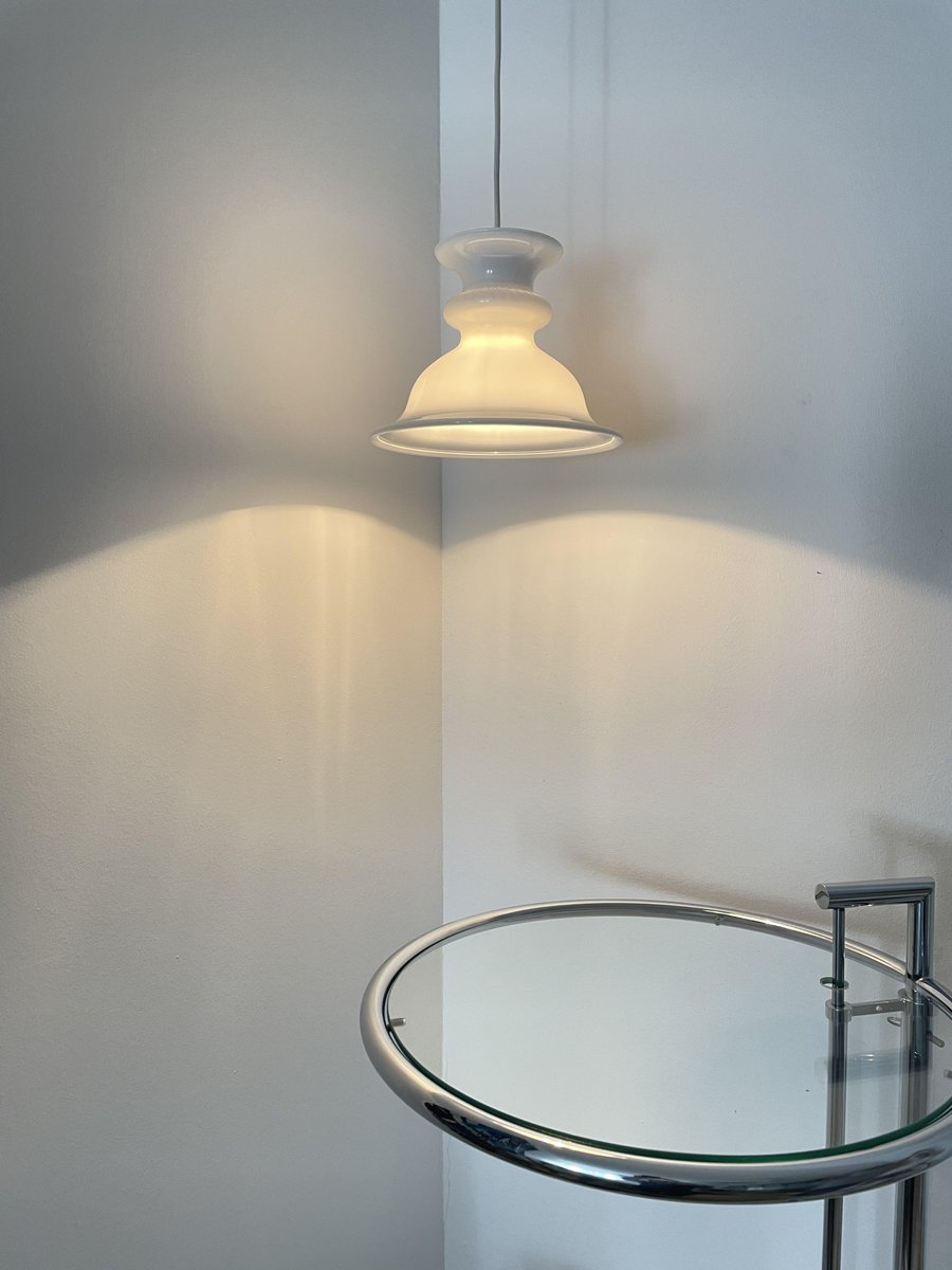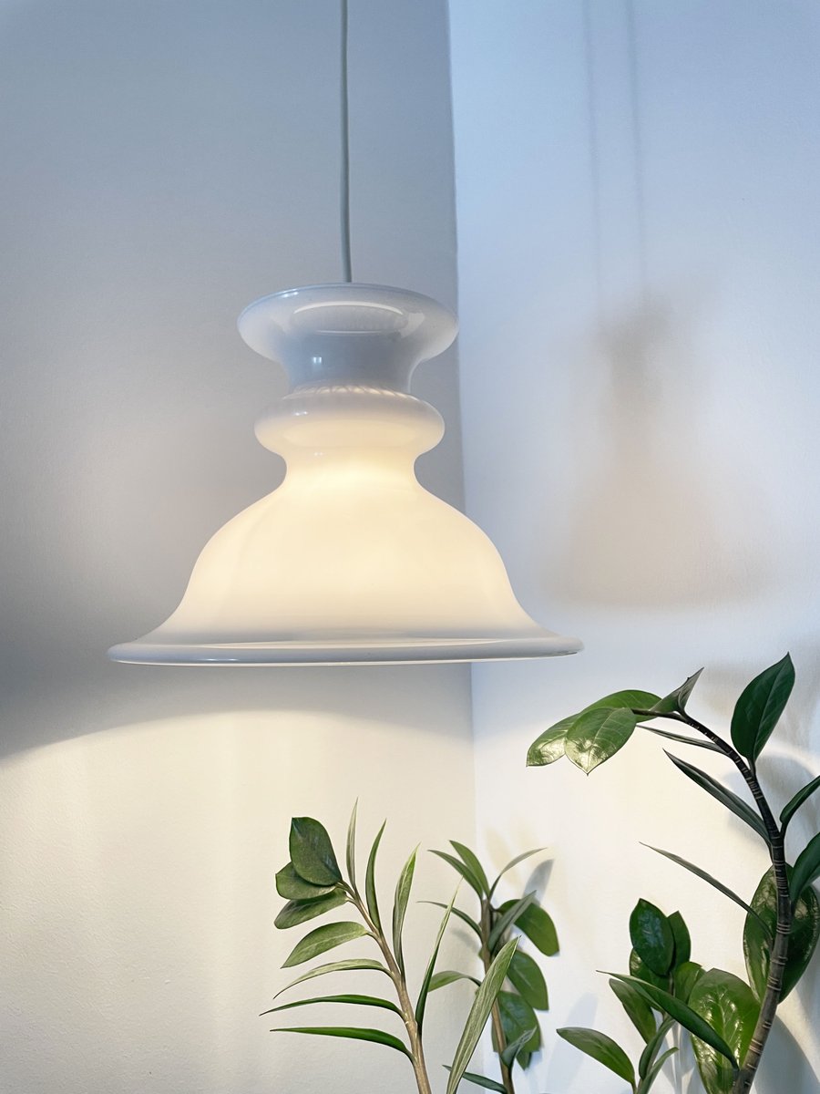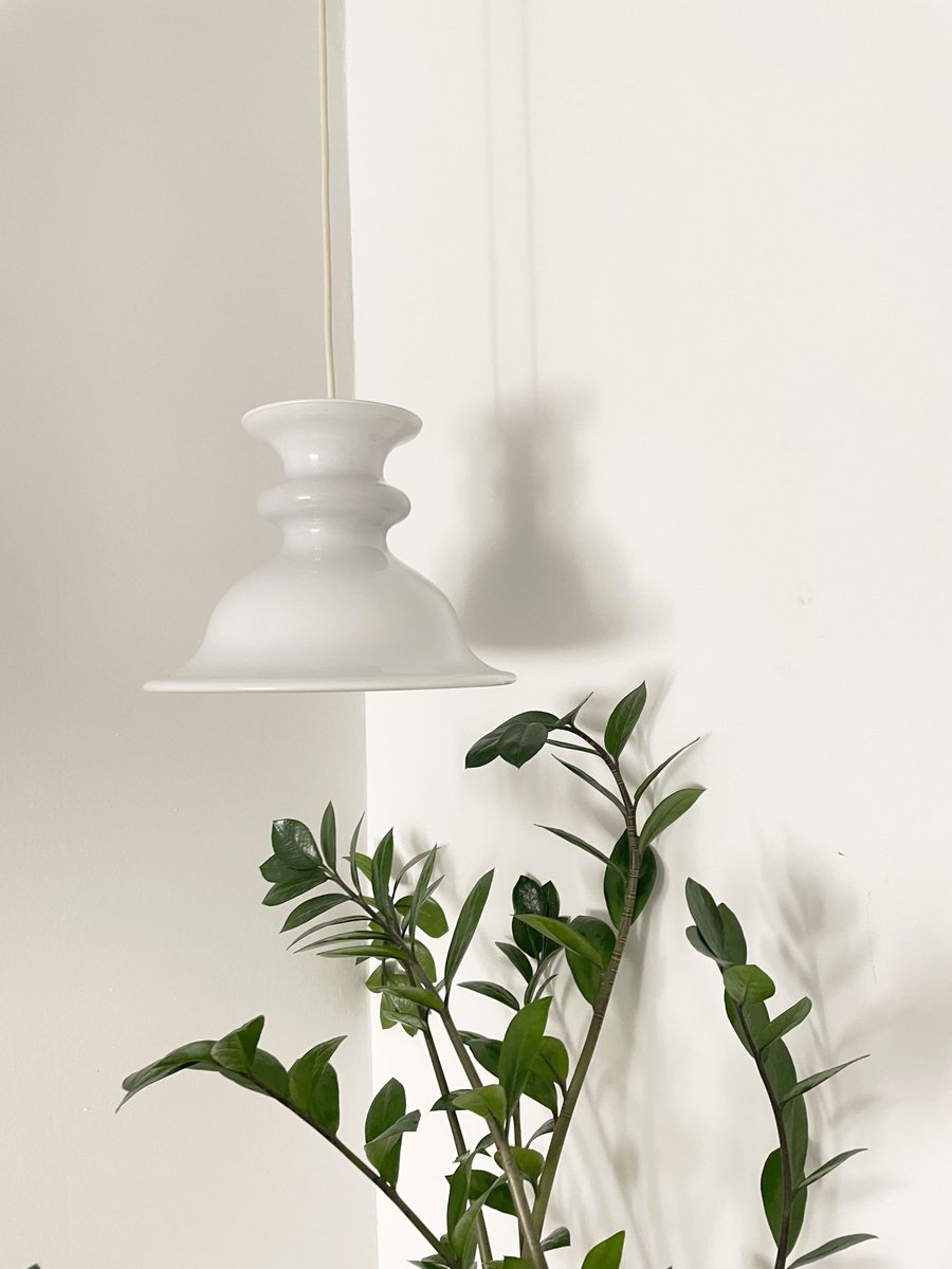Weiße Glas Hängelampe von Sidse Werner, Dänemark, 1960er
