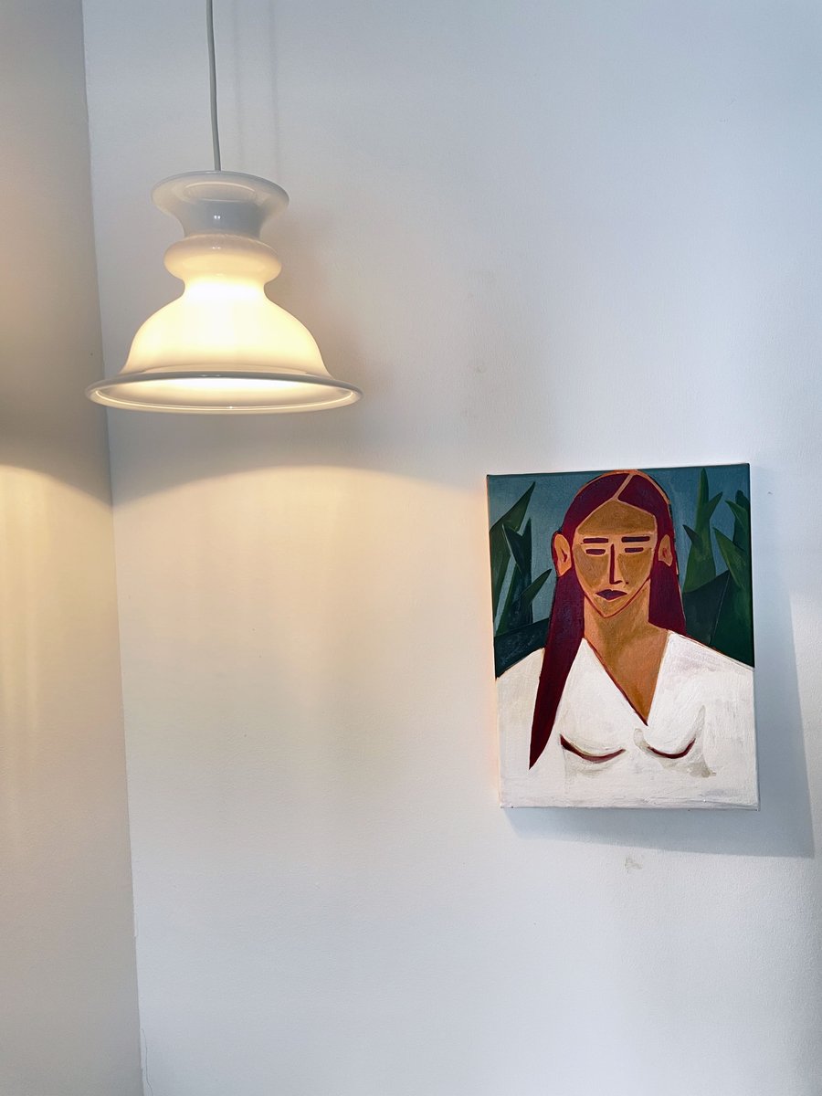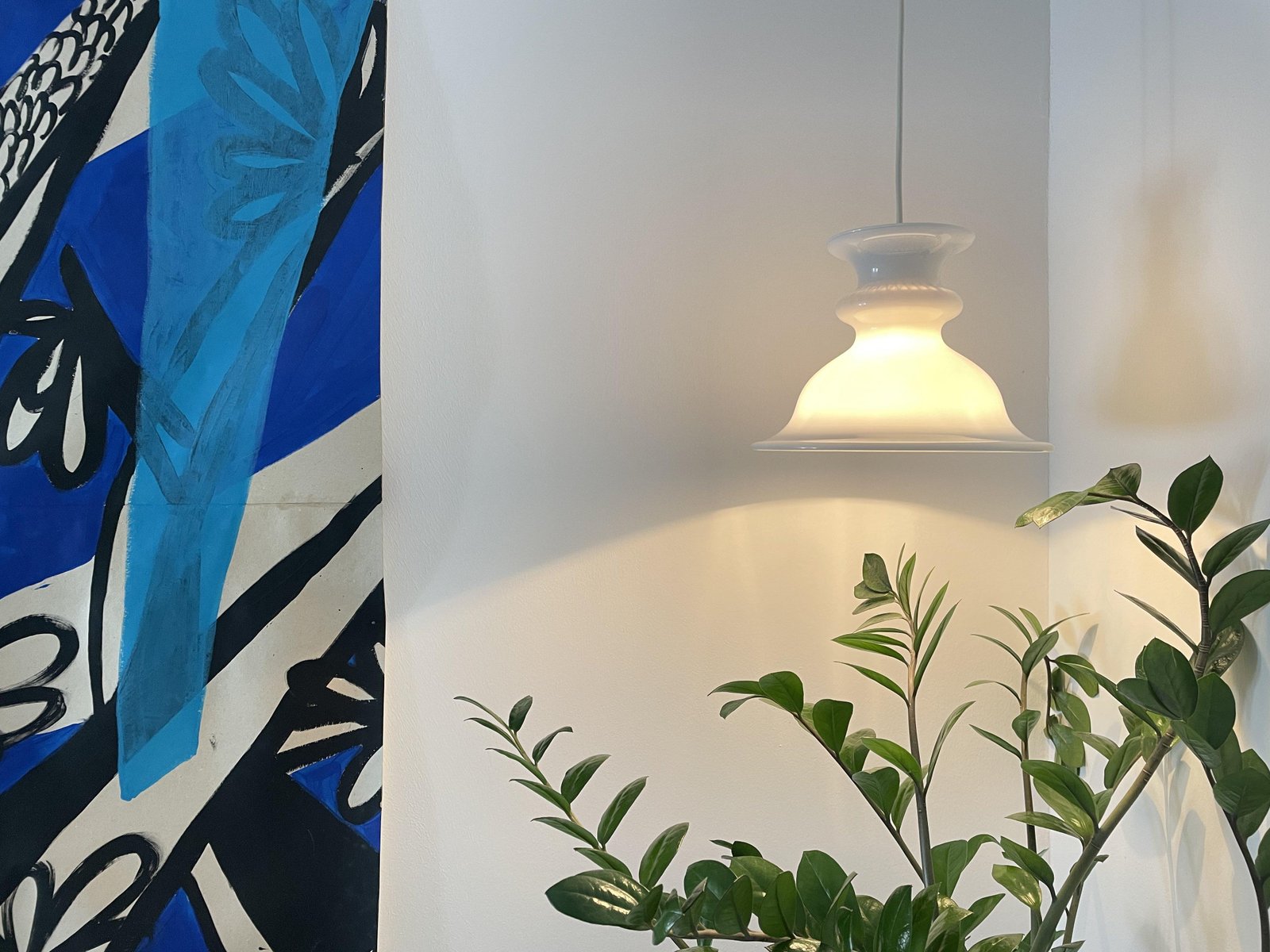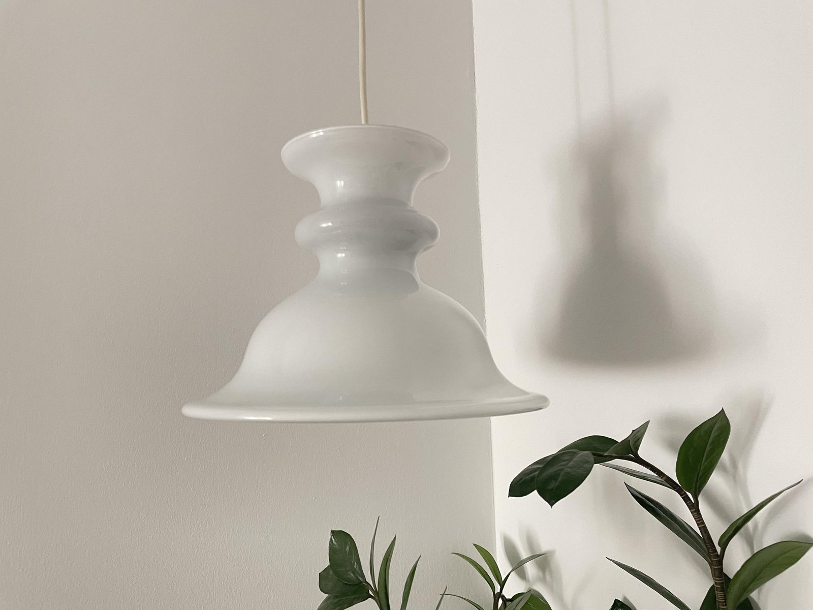 Weiße Glas Hängelampe von Sidse Werner, Dänemark, 1960er