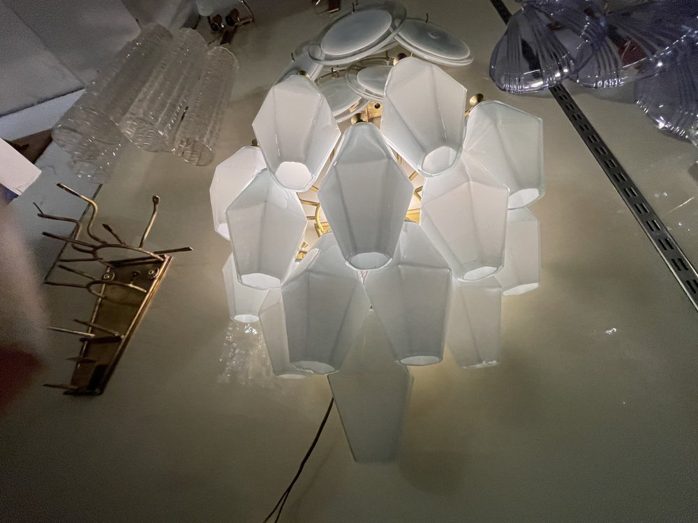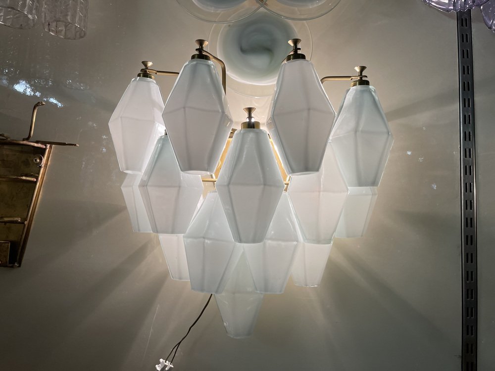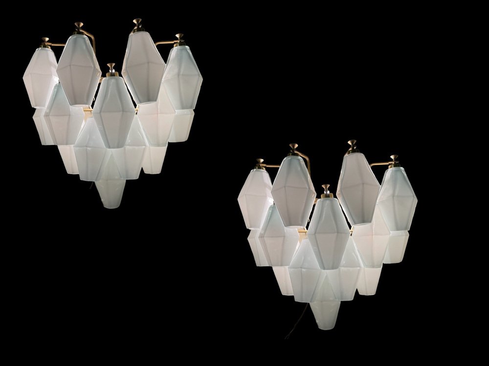 Weiße Polygon Wandleuchten aus Opalglas, 1980er, 2er Set