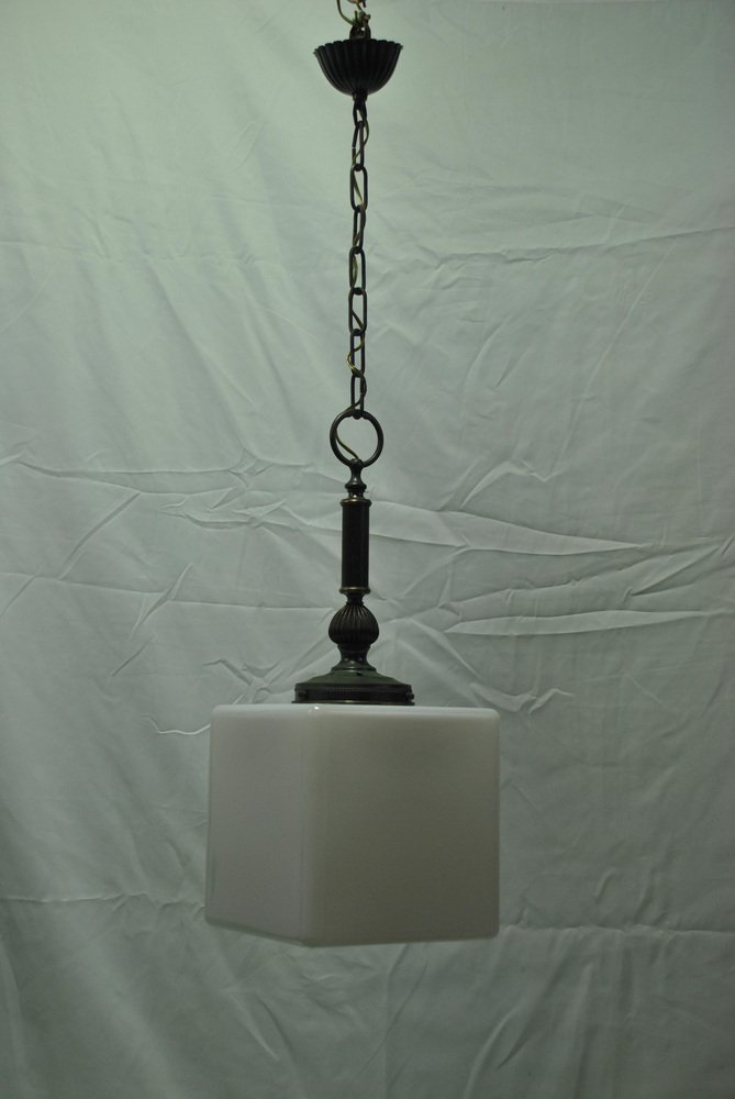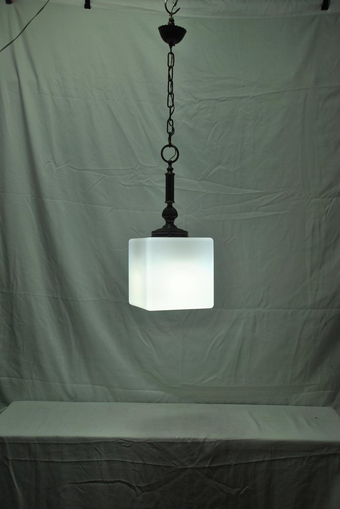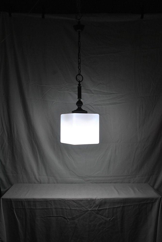 Weißer Vintage Glas Kronleuchter in Würfelform, 1980er