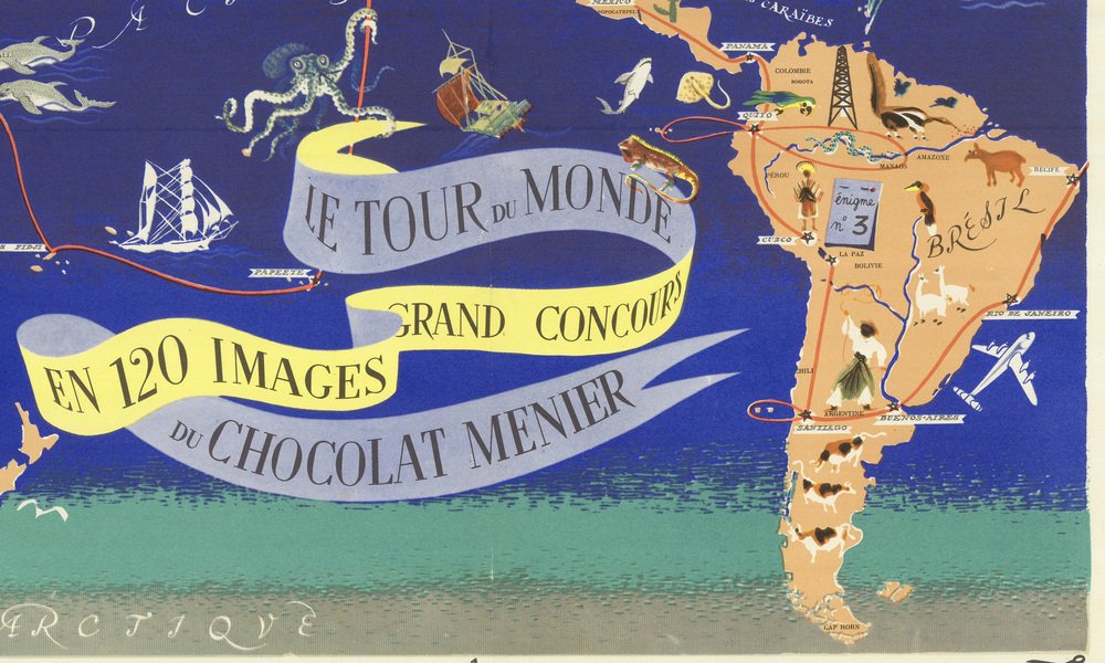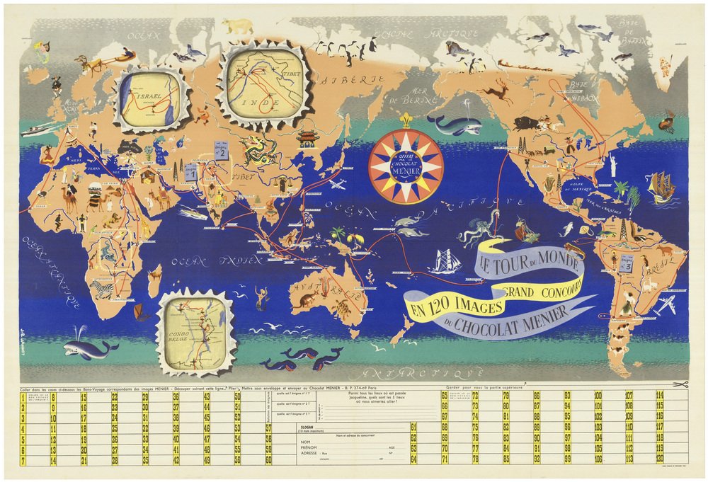 Weltkarte als Chocolatiers-Wettbewerb, 1950er