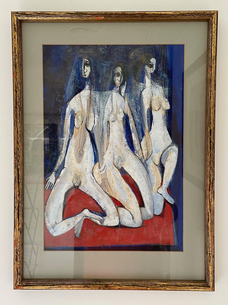 Zainab Reddy, Komposition mit Figuren, Gouache Painting, 1971