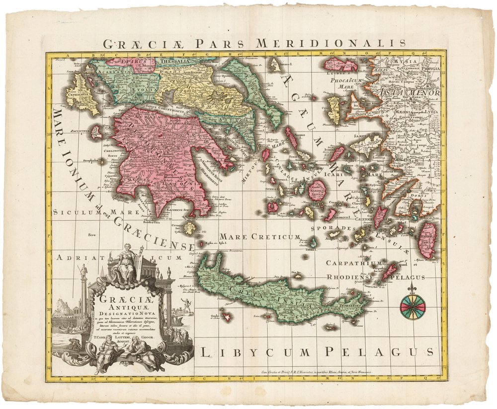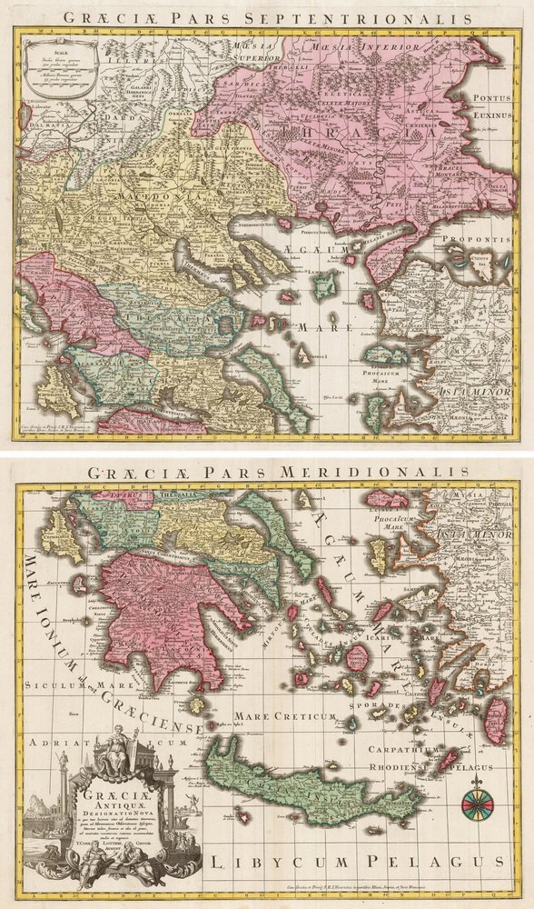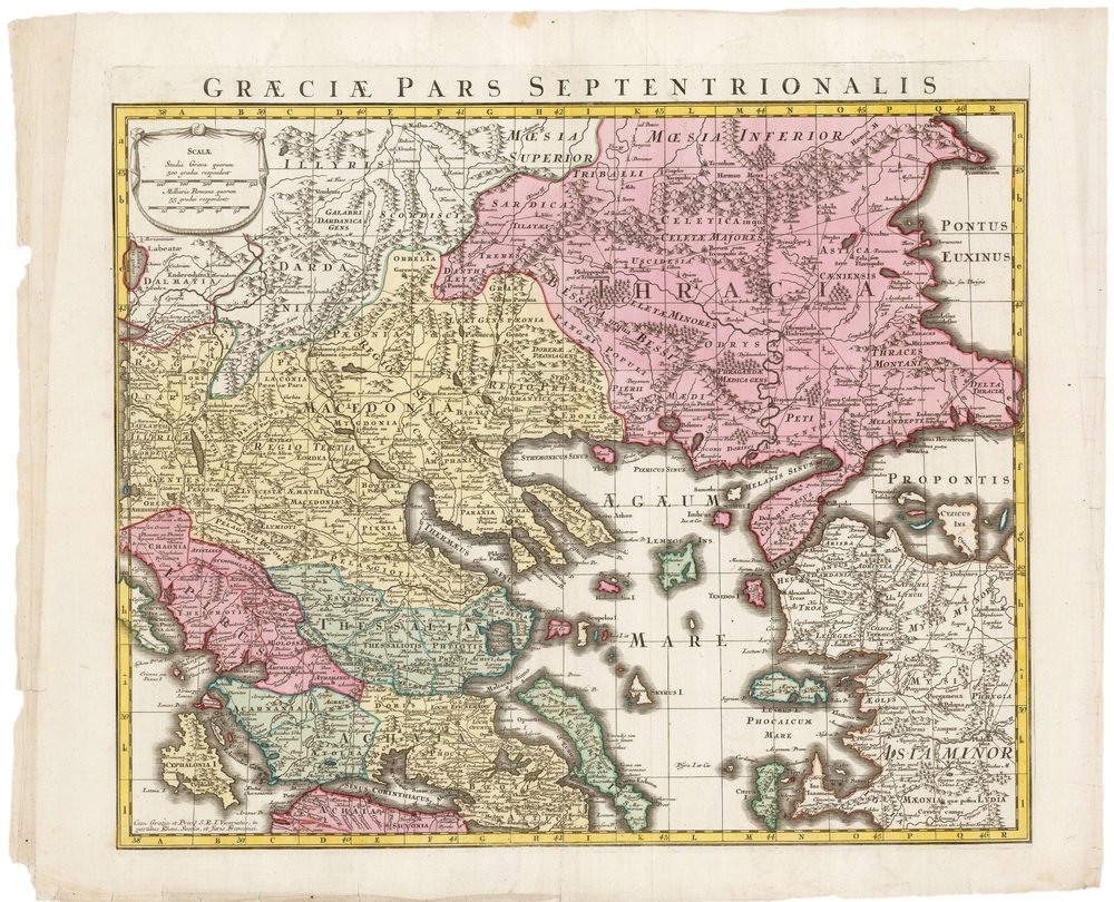 Zweiseitige Karte des antiken Griechenlands, 18. Jh. von Aeg