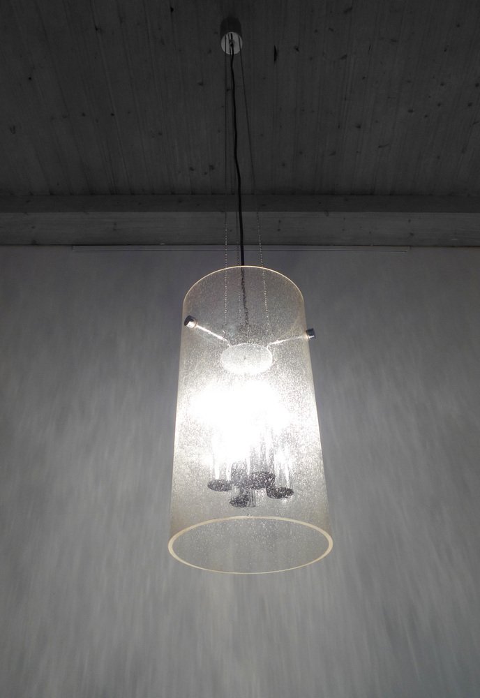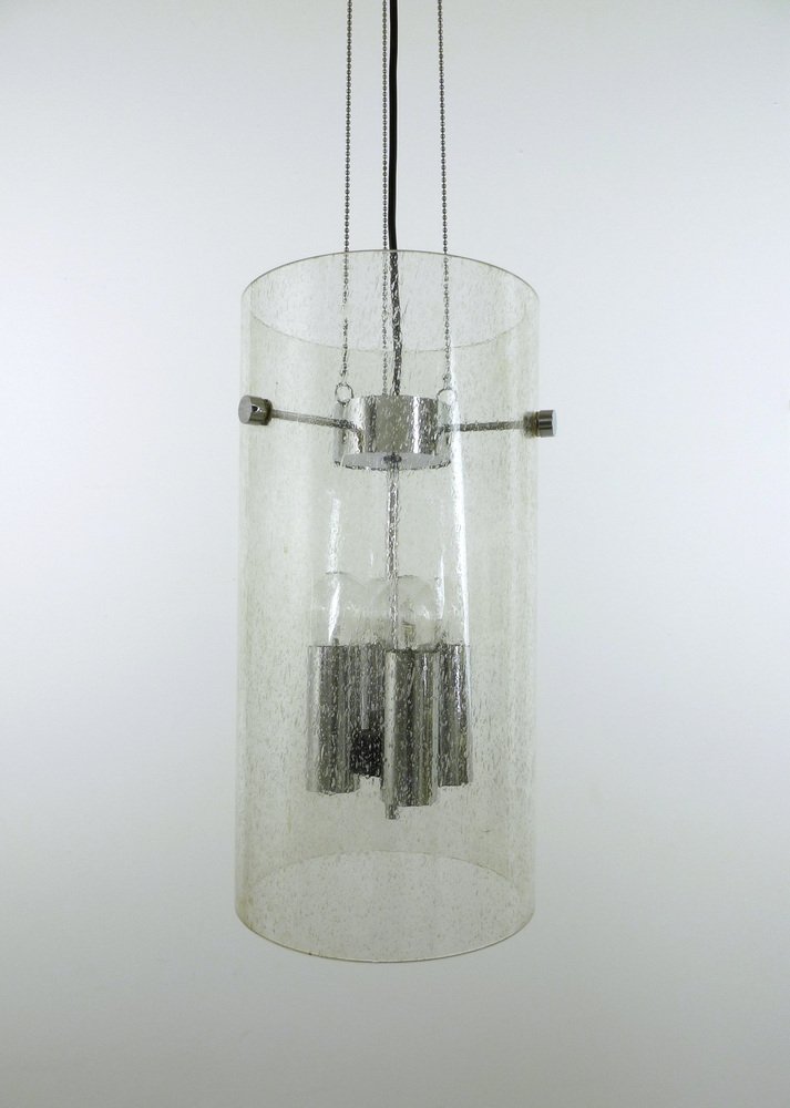 Zylindrische Hängelampe aus Glas von Glashütte Limburg, 1970er